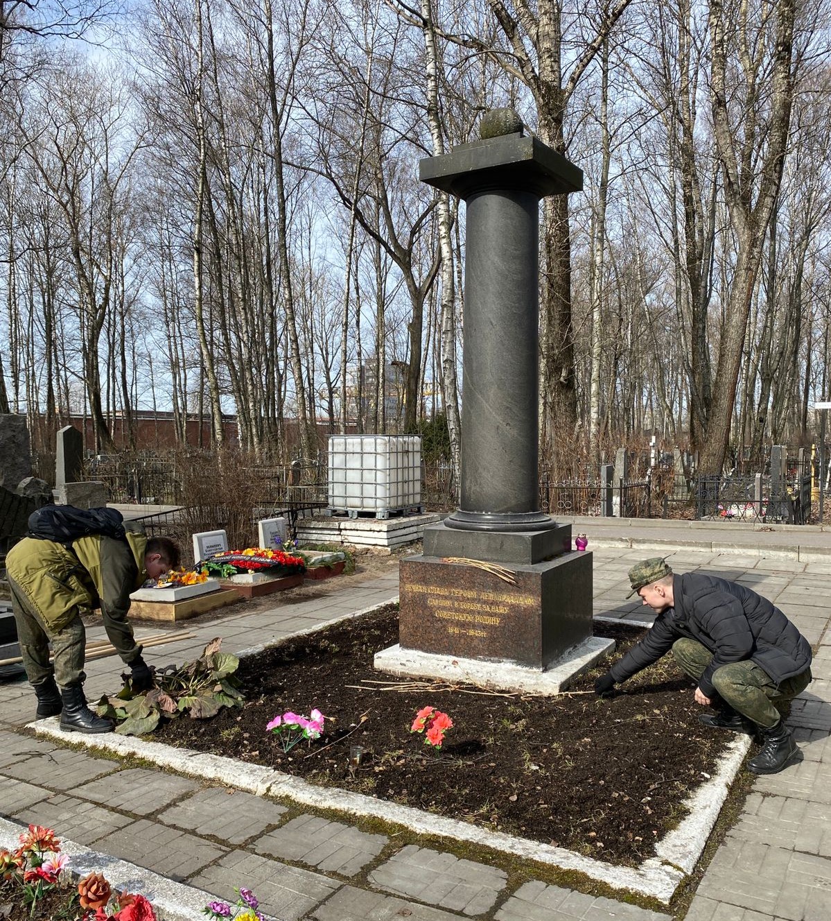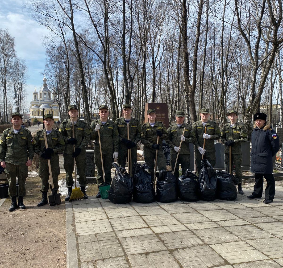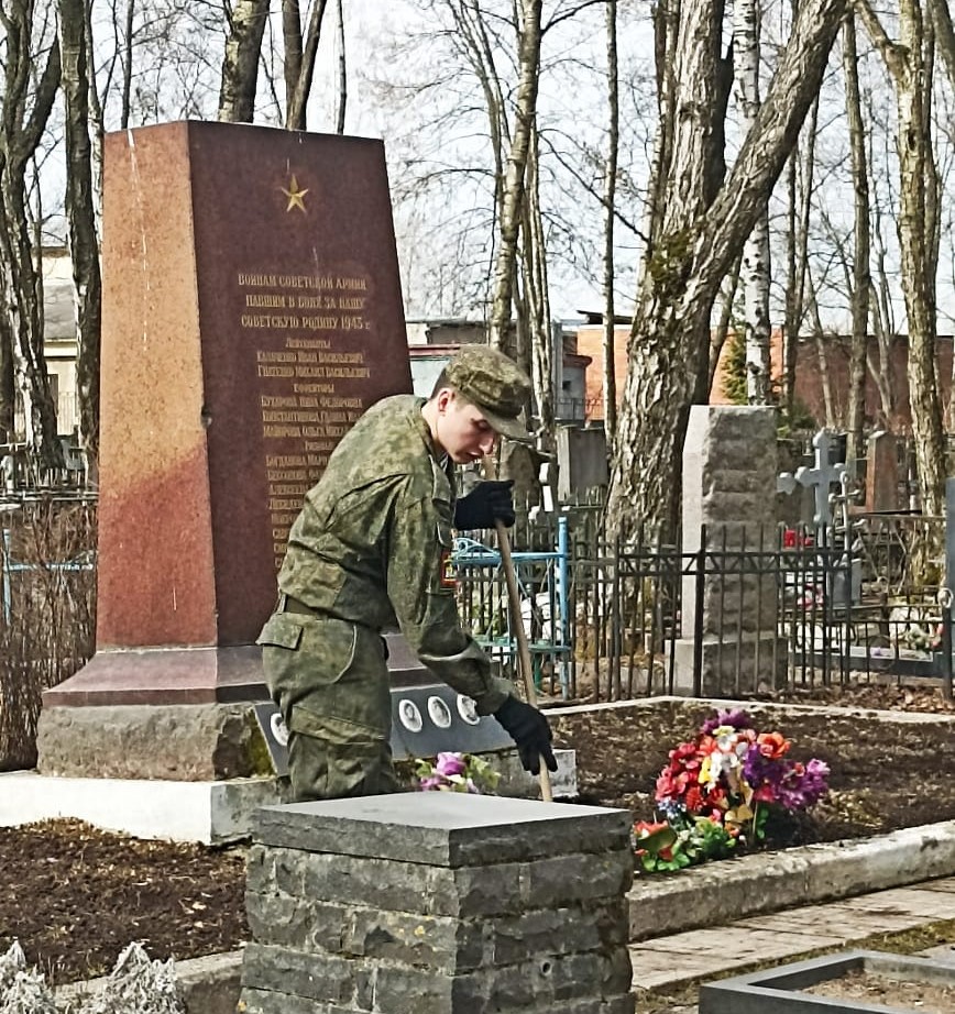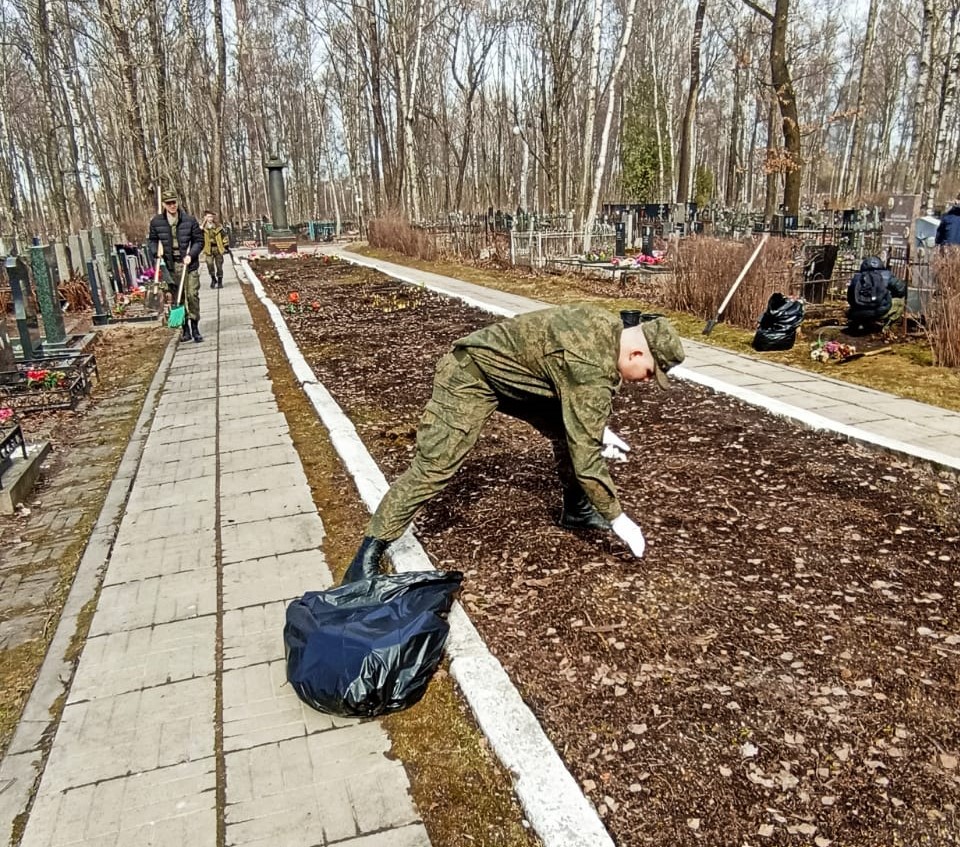 Так, 18 апреля студенты Военного учебного центра провели мероприятия по уходу за воинскими захоронениями, мемориалами и памятниками защитников Отечества на территории Киновеевского кладбища. Ребята убрали мусор, собрали прошлогоднюю листву и подготовили клумбы к посадке цветов.