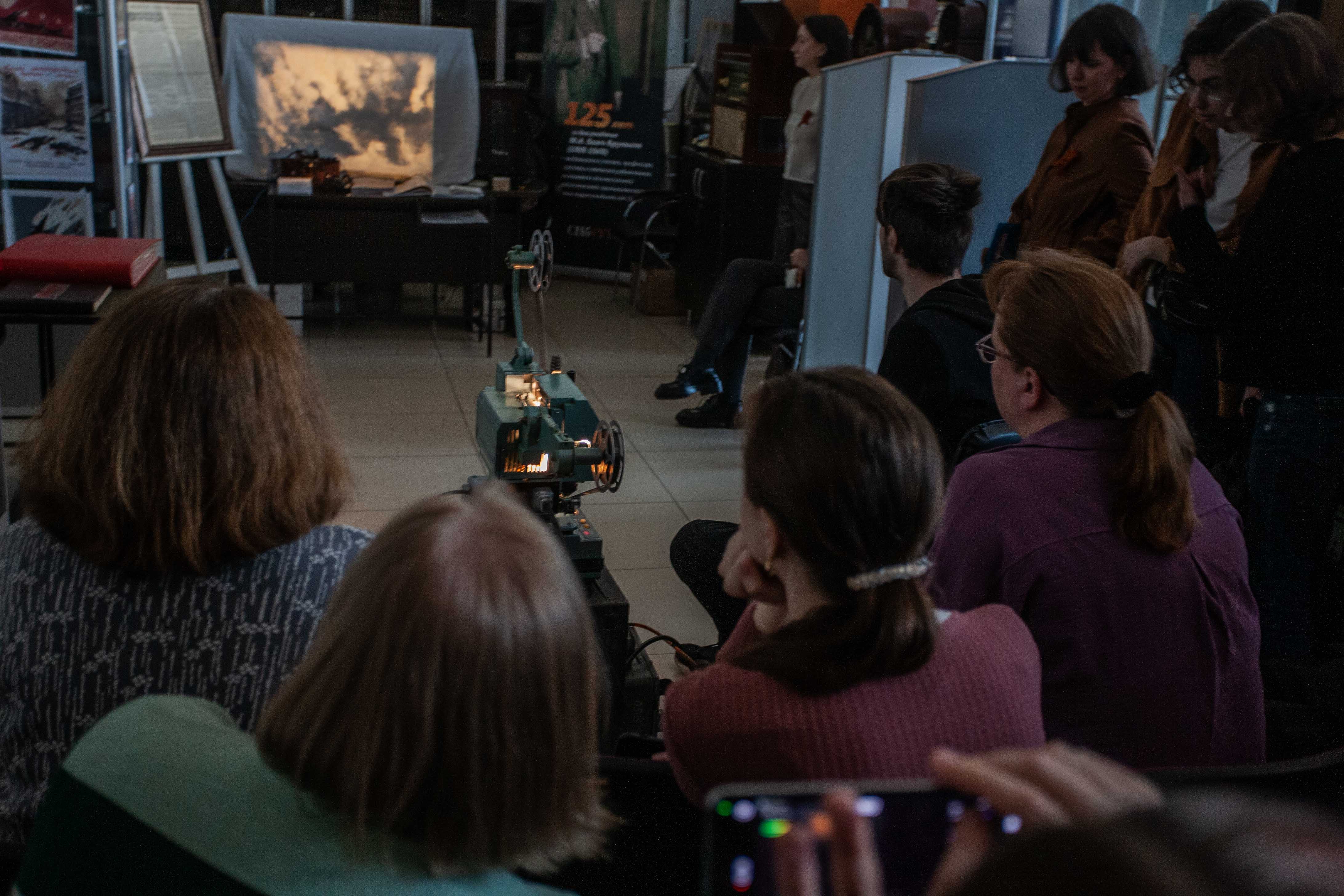Благодаря таланту и усилиям студента факультета ИКСС СПбГУТ Никиты Лысикова киноустановка находится в прекрасном рабочем состоянии и воспроизводит документальные кадры прошлого, позволяя нам максимально прочувствовать эпоху плёночного кинематографа.