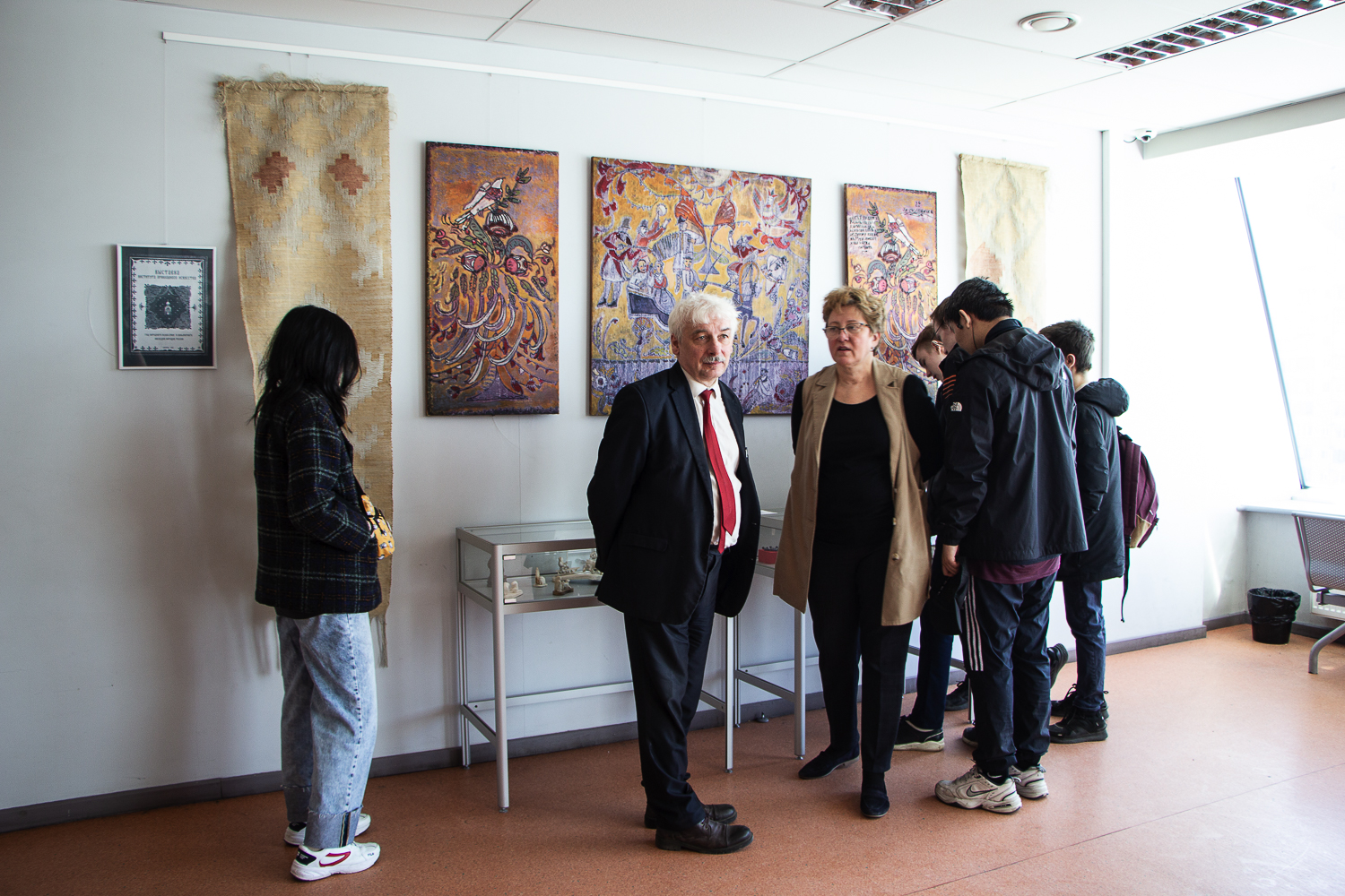 На открытии выставки выступили проректор по воспитательной работе и связям с общественностью СПбГУТ Ирина Алексеенко, директор института прикладного искусства СПбГУПТД Любовь Жукова, и. о. заведующего кафедрой декоративно-прикладного искусства и народных промыслов СПбГУПТД Александр Григорьев, а также студенты и преподаватели обоих университетов.