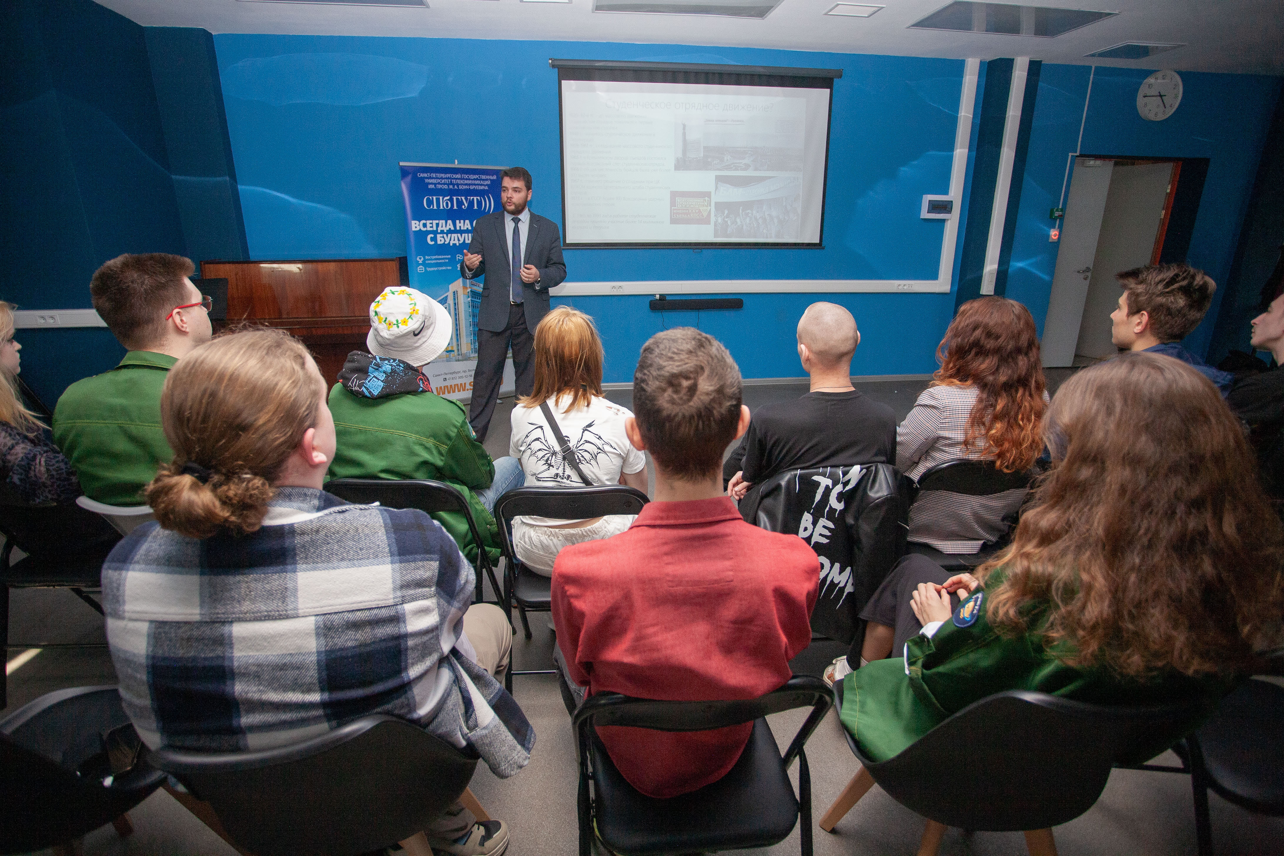 В Санкт-Петербургском университете телекоммуникаций прошла форсайт-сессия «Влияние отрядного движения на развитие страны: опыт СССР и современности». Здесь встретились опытные и начинающие бойцы студенческих отрядов.