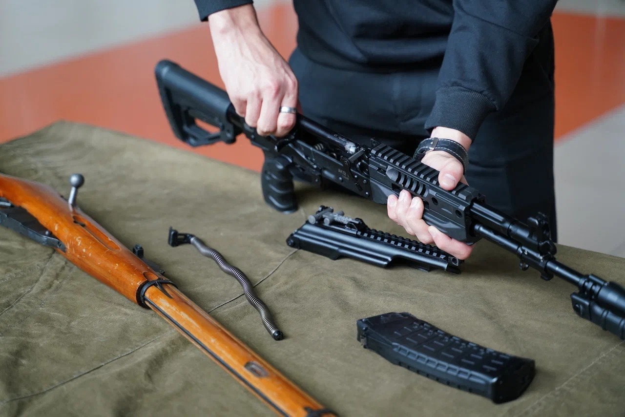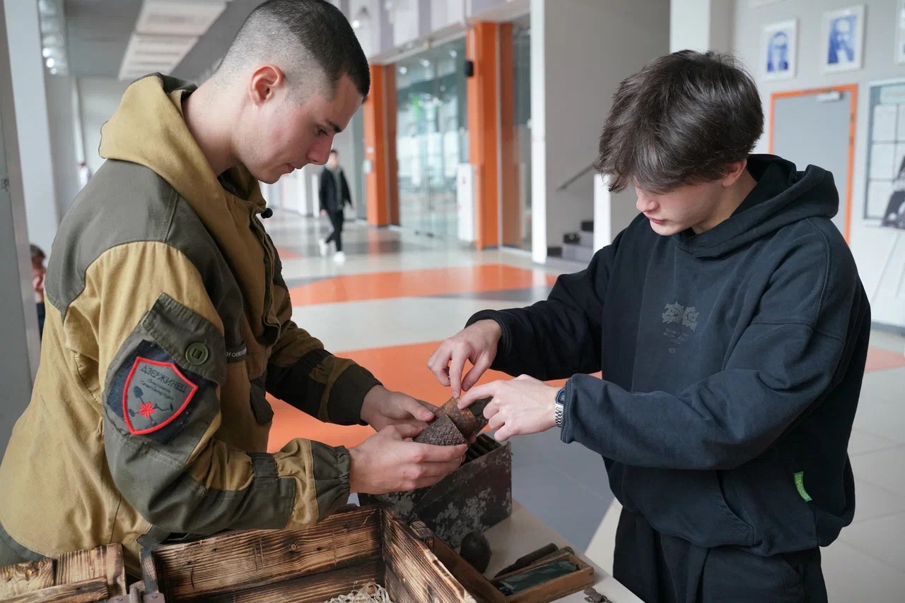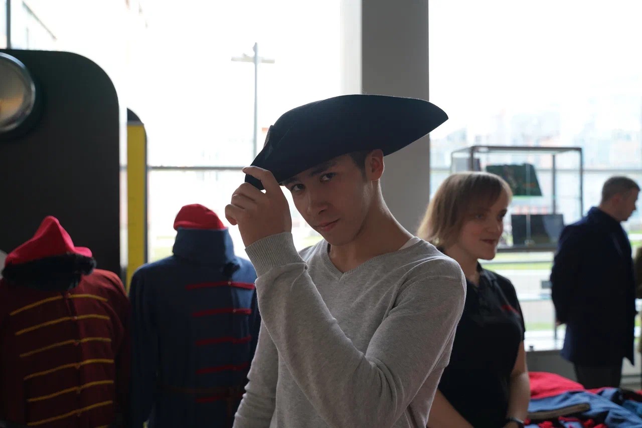 В интерактивном формате в холле 1 этажа ребята познакомились с находками, обнаруженными в ходе поисковых работ; примерили исторические костюмы и сфотографировались; разобрали и собрали автомат Калашникова.
