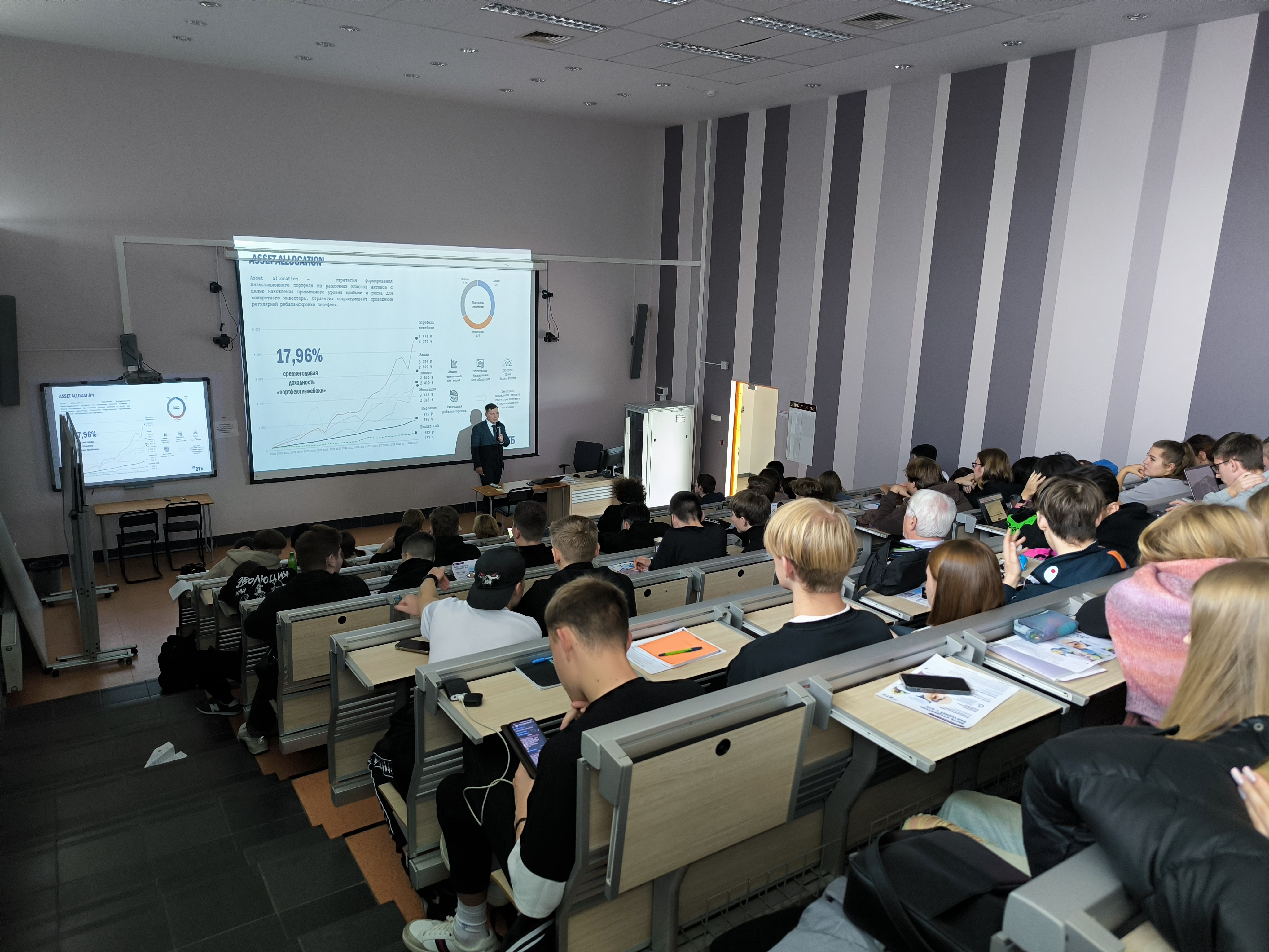 Он рассказал об инвестициях, куда выгодно вложить денежные средства, чтобы получить максимальную прибыль. Студенты узнали о классах активов с нулевой корреляцией между собой, подходе к управлению финансами методом Asset Allocation, портфеле «лежебоки» и правилах для составления различных портфелей.