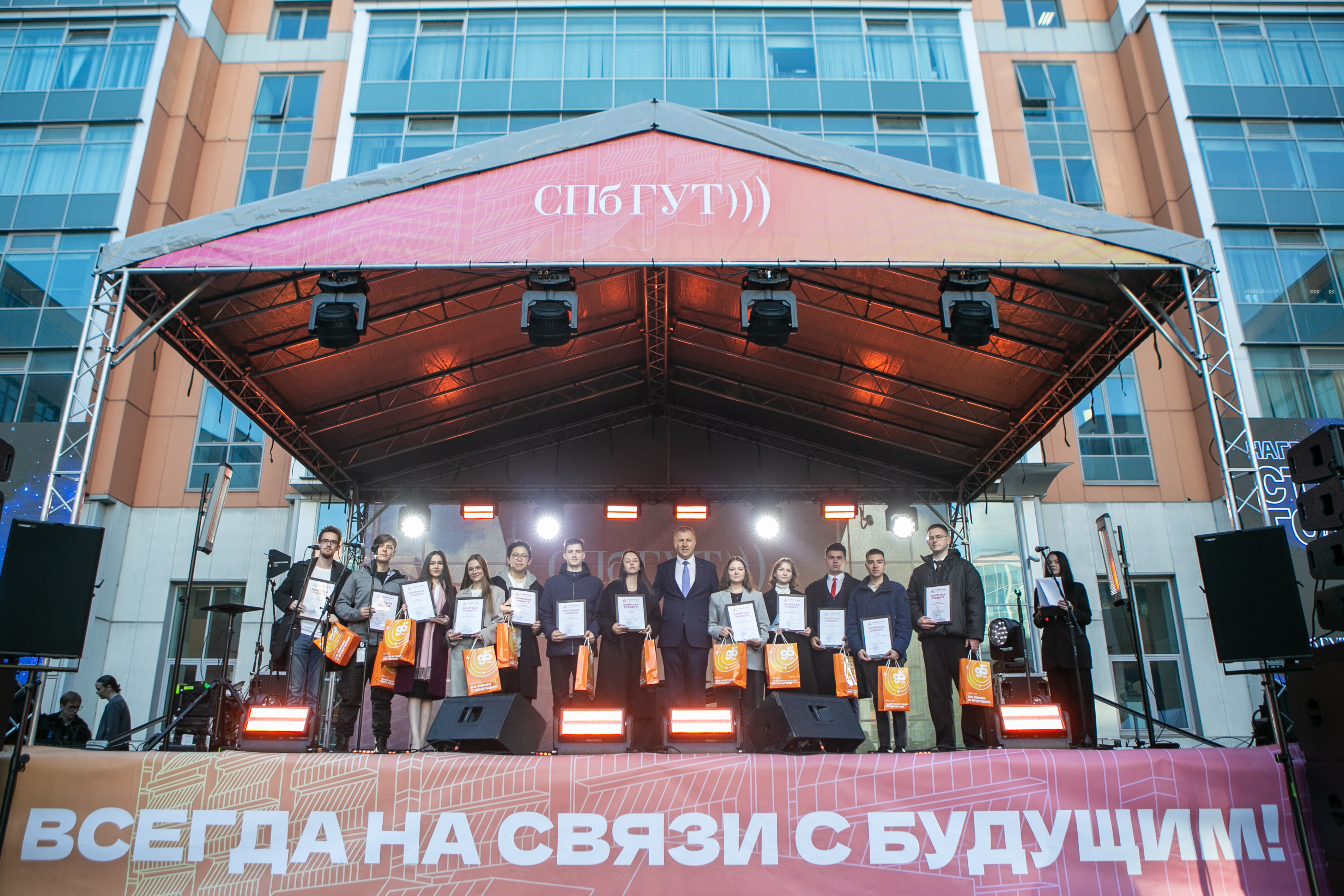 Участников праздника поздравил ректор Руслан Киричёк, после чего были объявлены победители ежегодного конкурса «Студент года СПбГУТ»: