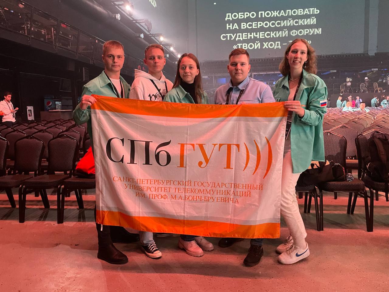 Всероссийский студенческий форум «Твой ход» проходил в Москве с 11 декабря, а 17 декабря состоялась церемония его закрытия. Студенческую делегацию СПбГУТ представляли заместитель председателя Студенческого совета Илья Саух и финалисты конкурса Елена Кутузова, Юлия Иванилова и Семен Курочкин.