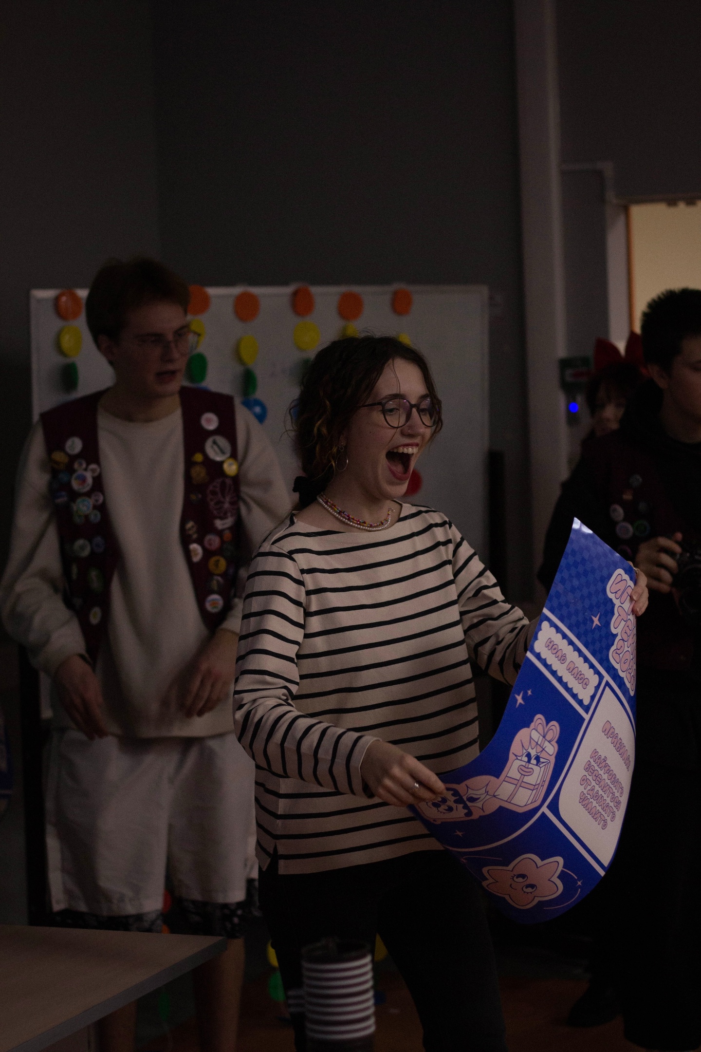 Студенты пробовали себя в роли фотокорреспондентов вечера и дополняли альбом мероприятия своими снимками. Также ребята написали желания на Новый год и украсили ими елку.