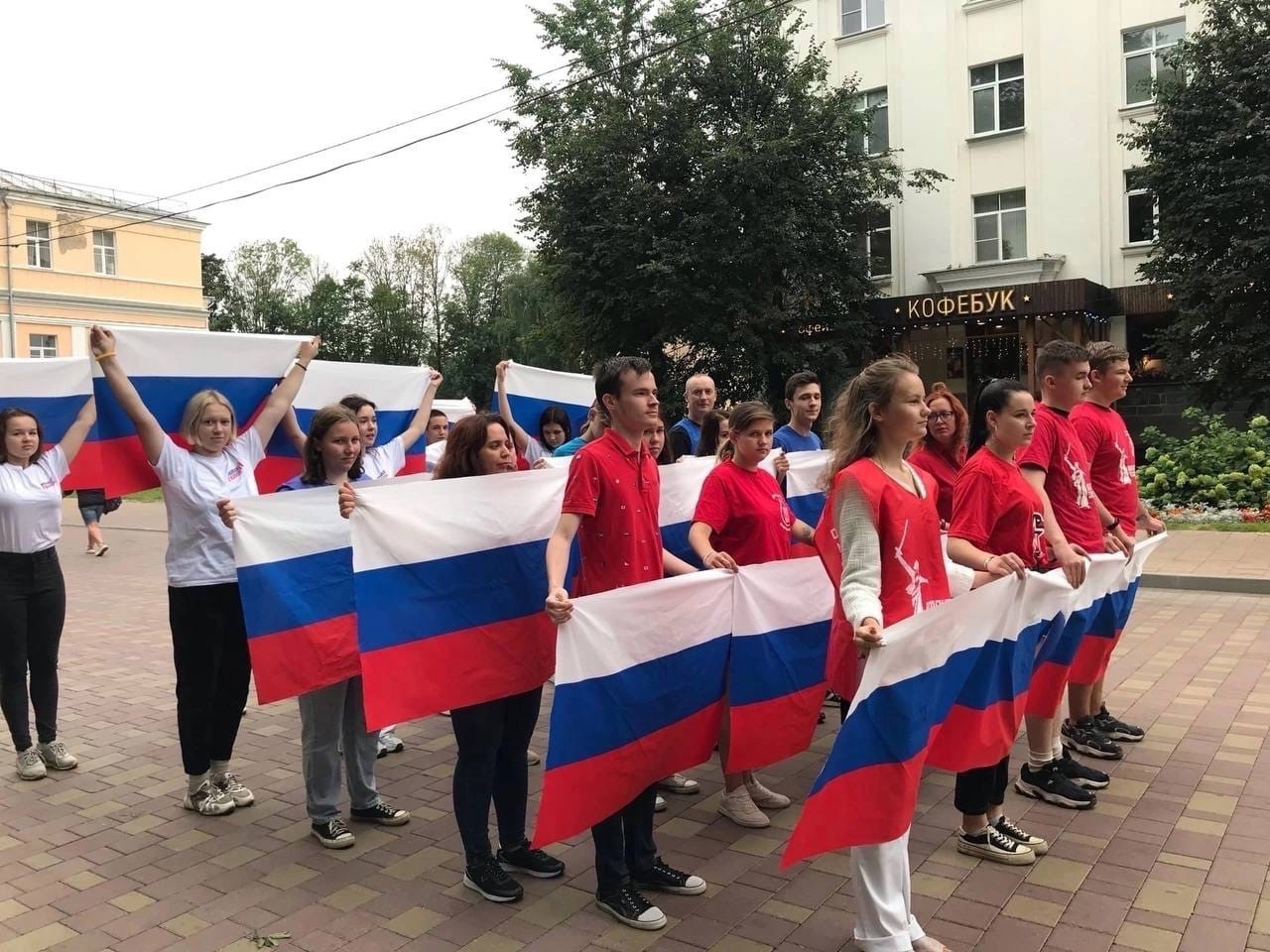 В Смоленске 22 августа прошло праздничное молодежное шествие – патриотический флешмоб «Живой флаг». СПбГУТ представил волонтерский отряд «Город добрых сердец» – студенты Смоленского колледжа телекоммуникаций, филиала университета. Волонтеры в футболках и манишках цветов триколора выстроили флаг РФ и прошли по центральным улицам города.