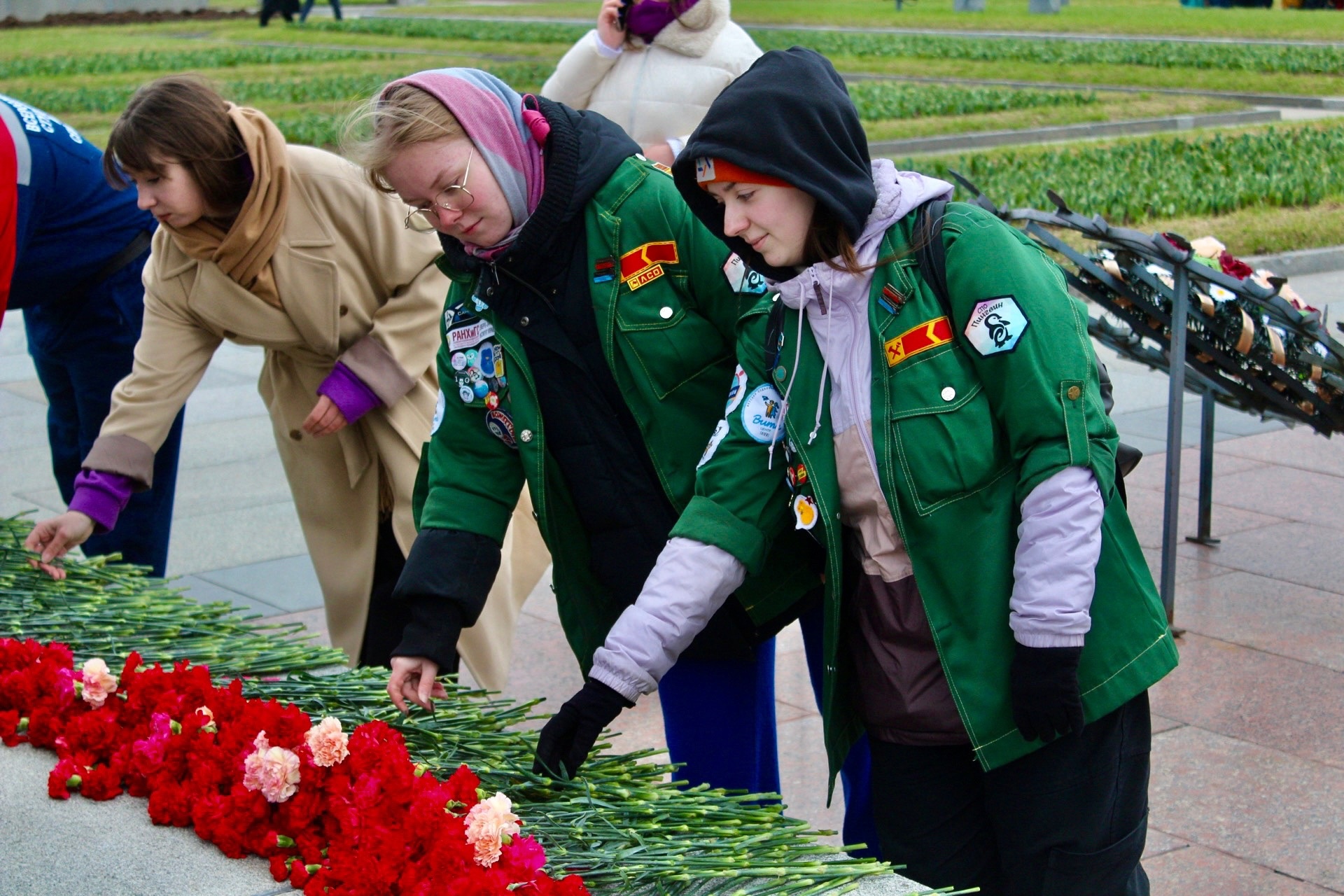 19 апреля на Пискарёвском мемориальном кладбище состоялось возложение цветов к монументу «Мать-Родина». Честь нести знамёна городов, где проводилась акция, и венки выпала студентам нашего университета: Даниле Горюшкину (ИБС-01), Дмитрию Кузнецову (ИКТС-13), Антону Яблокову (РМ-11), Никите Смолкину (РМ-23), Анастасии Макуха (РСО-13), Алексею Литвинову (РТ-32м).