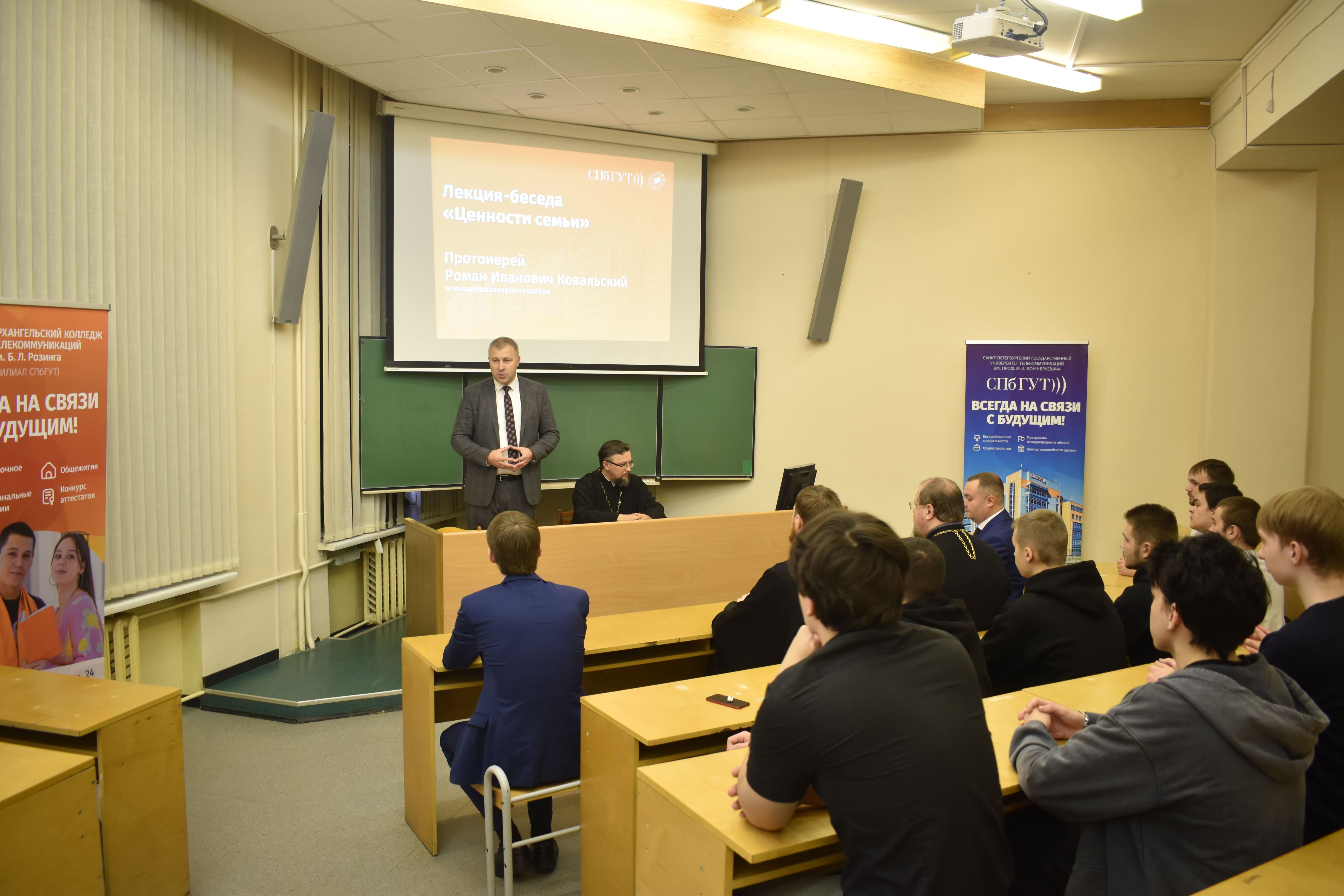 Для студентов прошла лекция-беседа «Ценности семьи», которую провёл Иерей Александр Григорьев.