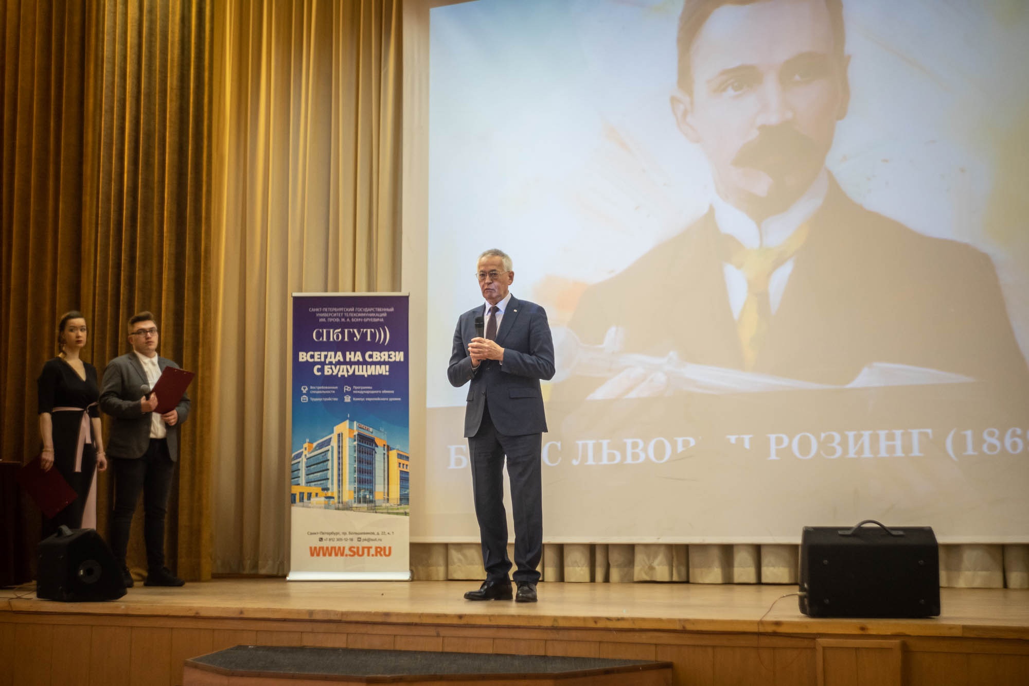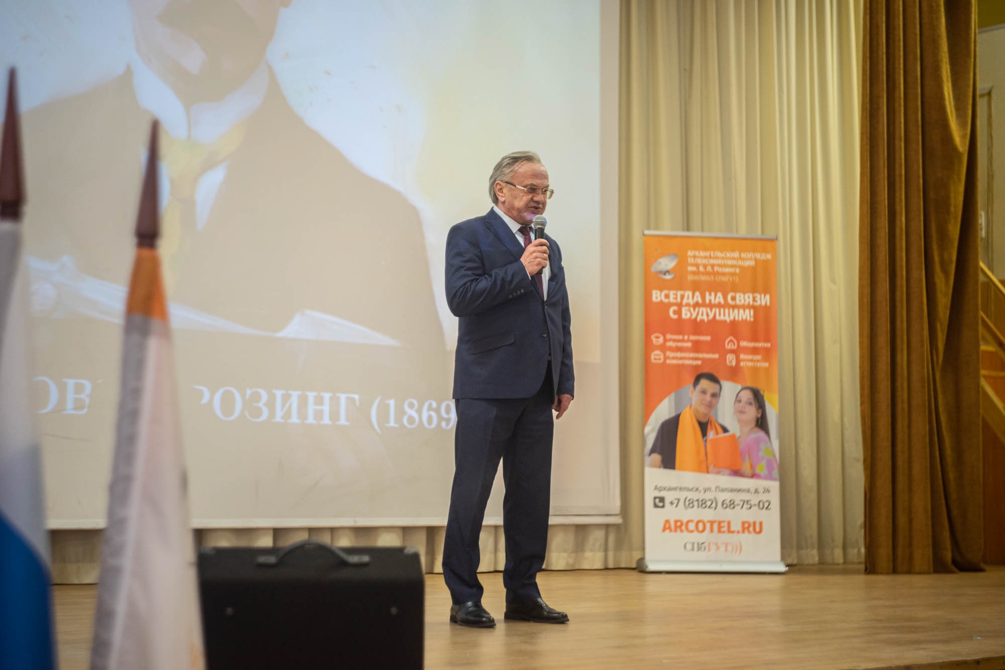 19 апреля в Архангельском колледже телекоммуникаций прошло торжественное собрание, посвящённое 155-летию со дня рождения Бориса Львовича Розинга – учёного, физика-теоретика, инженера, изобретателя, педагога, общественного деятеля, имя которого носит колледж.