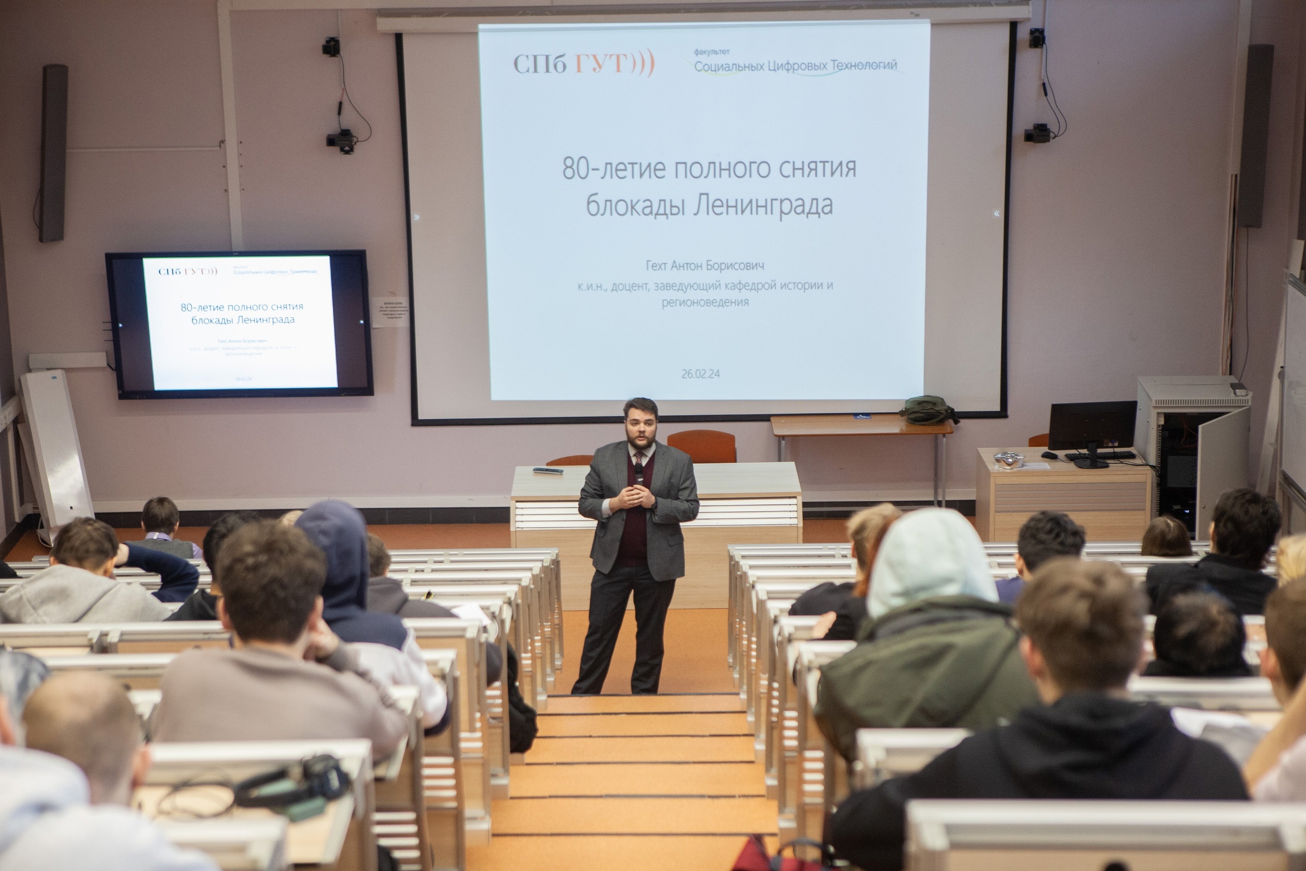 26 февраля в Санкт-Петербургском университете телекоммуникаций прошла открытая лекция, посвящённая 81-й годовщине прорыва блокады Ленинграда и 80-й годовщине полного освобождения Ленинграда от фашистской блокады в годы Великой Отечественной войны 1941-1945 годов.