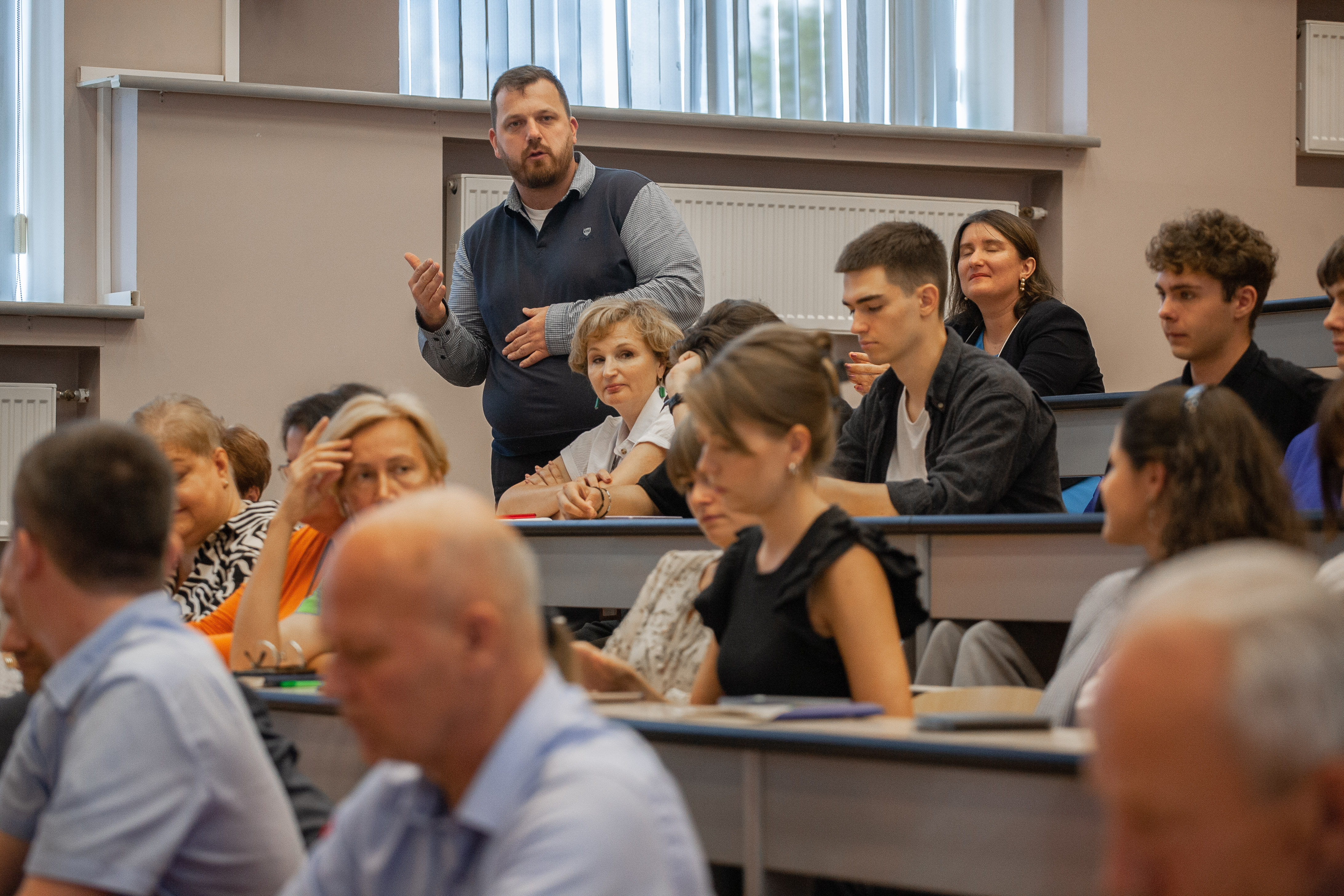Перед студентами выступили ректор СПбГУТ Руслан Киричёк, первый проректор – проректор по учебной работе Альберт Абилов, проректор по цифровой трансформации и административной работе Алексей Зайцев, проректор по проектной деятельности Дарина Окунева, проректор по молодёжной политике и международному сотрудничеству Нина Журавлёва, проректор по научной работе Сергей Брусиловский, директор департамента экономики и финансов Аркадий Эмексузян, председатель Студенческого совета Анастасия Краскова.
