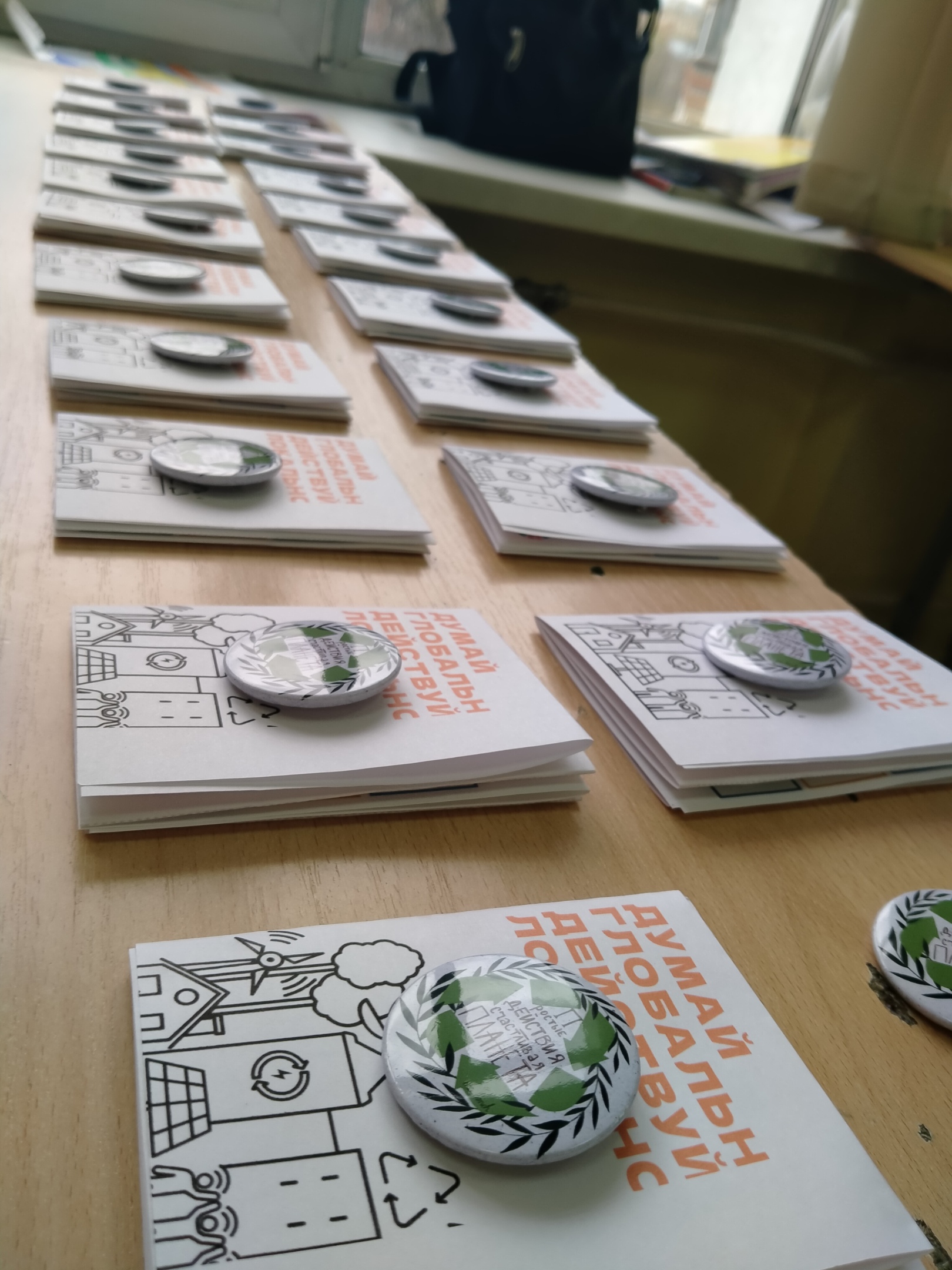 Школьникам подарили тематические значки и карманные книжки, напоминающие о простых действиях, которые помогут достичь целей устойчивого развития.