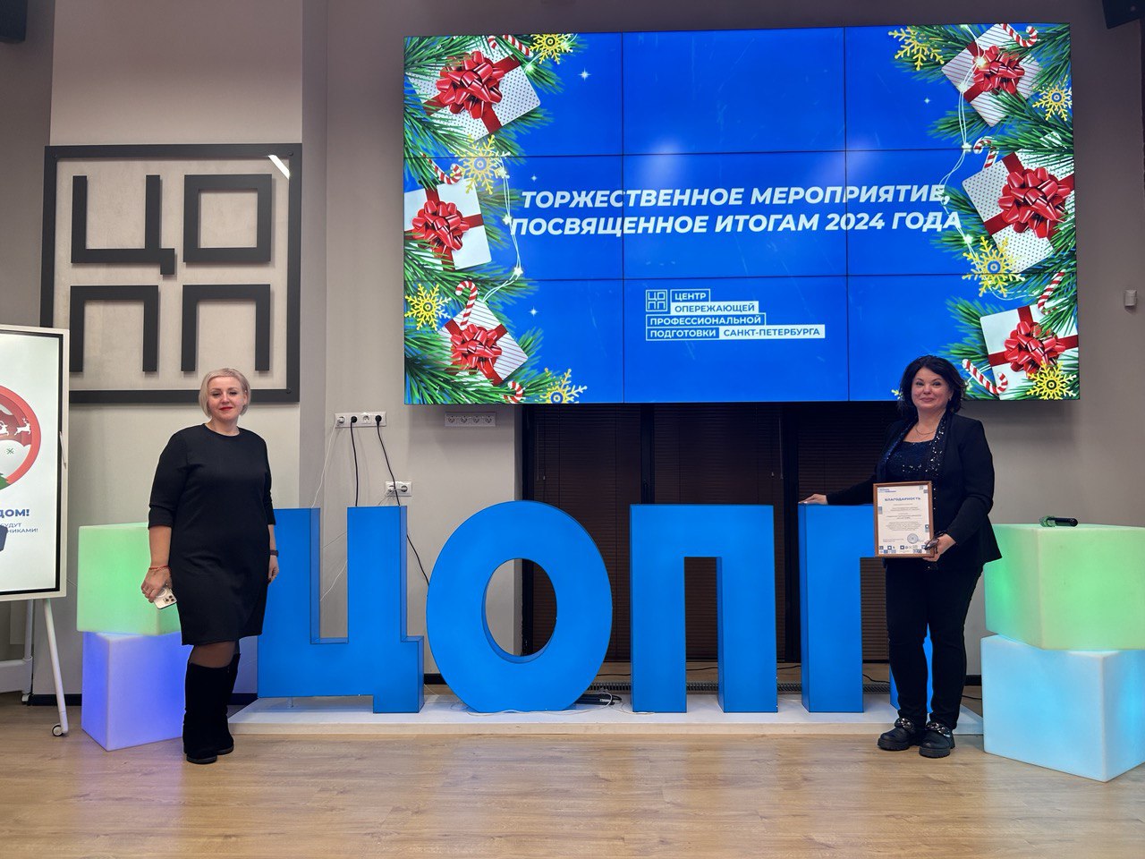 Санкт-Петербургский колледж телекоммуникаций им. Э. Т. Кренкеля получил благодарность за сотрудничество от Центра опережающей профессиональной подготовки Санкт-Петербурга по итогам 2024 года.