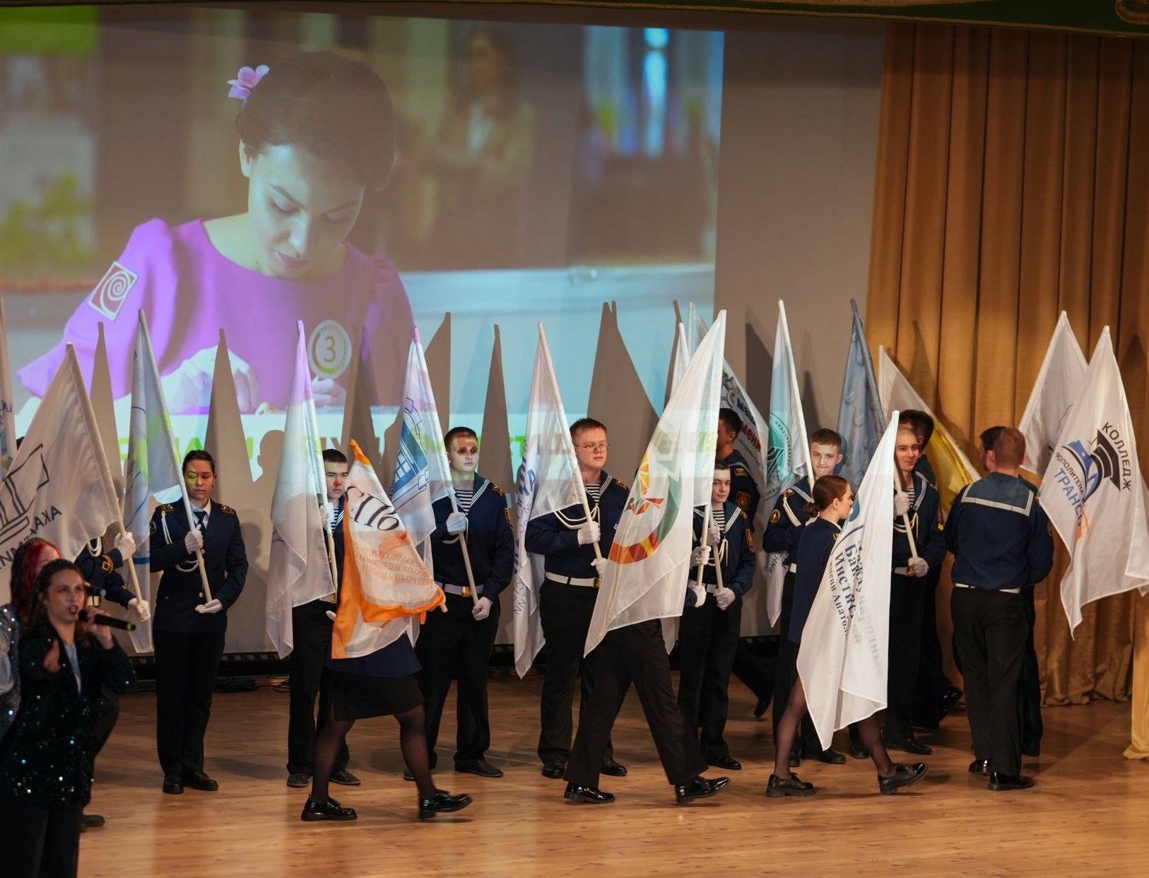 На церемонии открытия чемпионата «Профессионалы» команда СПбКТ приняла участие в торжественном параде флагов всех площадок, на которых в течение месяца студенты колледжей и школ со всего региона будут выбирать лучших в 320 компетенциях.