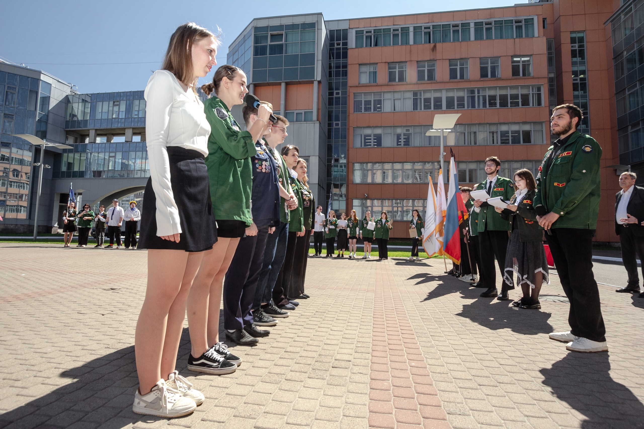 Почётное право открыть линейку было предоставлено флагоносцам. Затем с приветственной речью выступили проректор по молодёжной политике и международному сотрудничеству Нина Журавлева и начальник управления по воспитательной и социальной работе Ирина Алексеенко. Они отметили заслуги отрядов и пожелали студентам успешной и плодотворной работы.