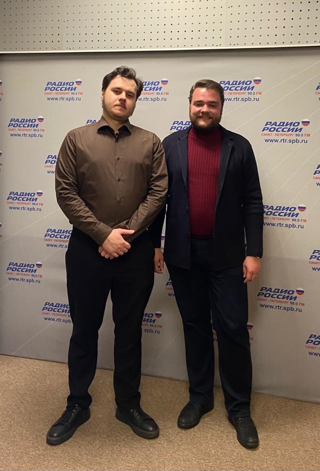 В эфире Ольги Смирновой приняли участие заведующий кафедрой истории и регионоведения СПбГУТ Антон Гехт и ассистент кафедры, аспирант ЛЭТИ Егор Руденко.