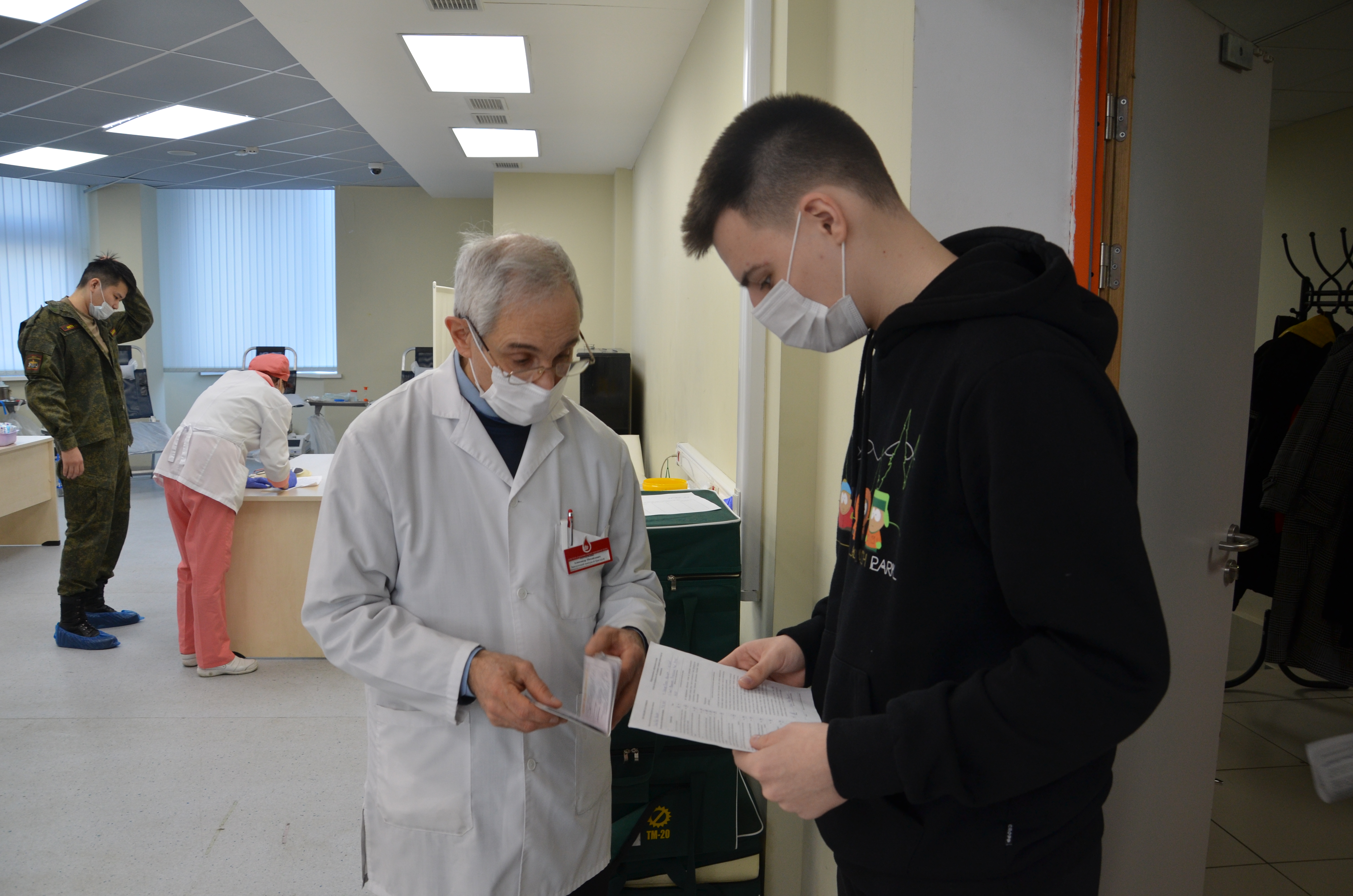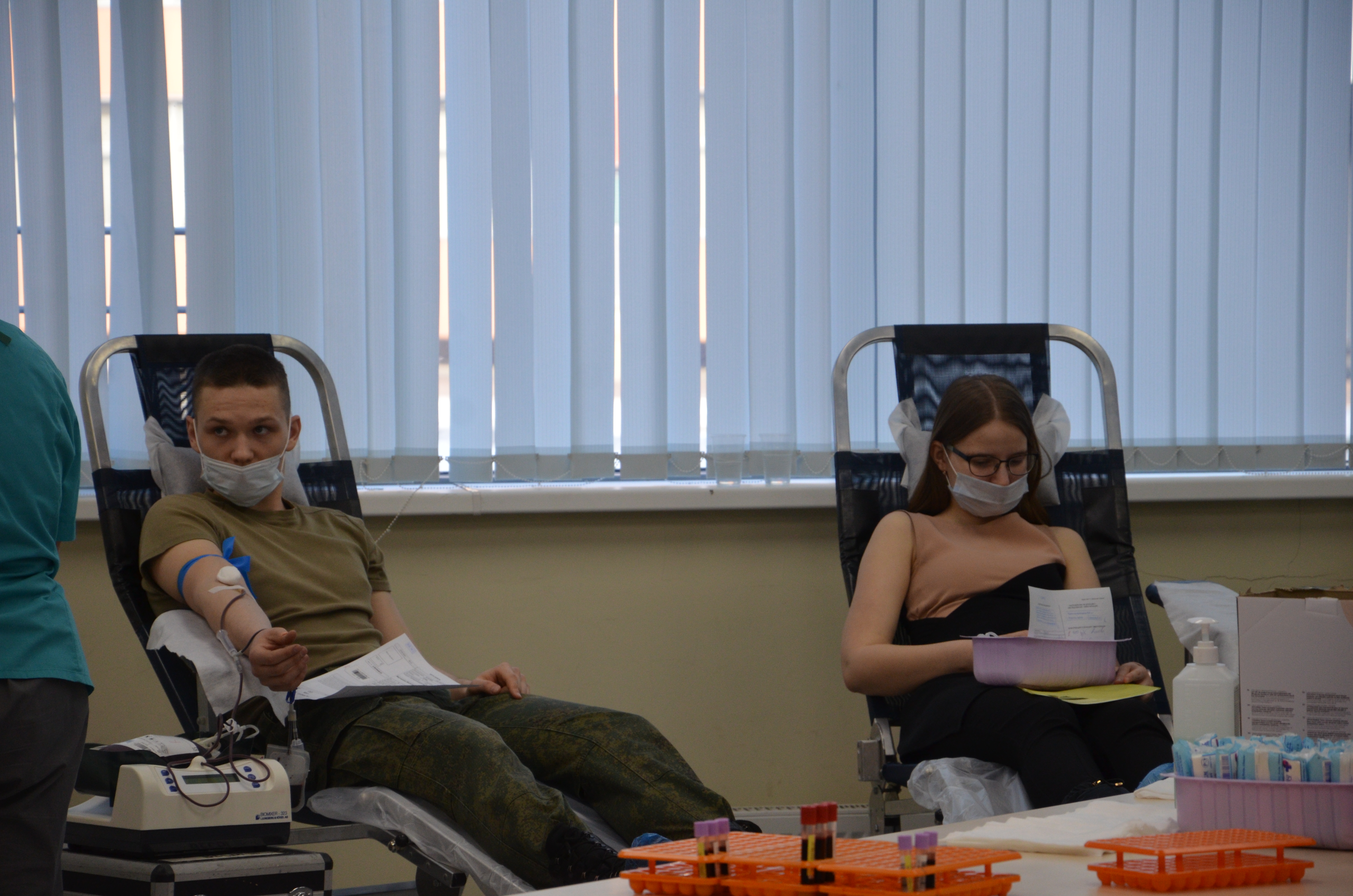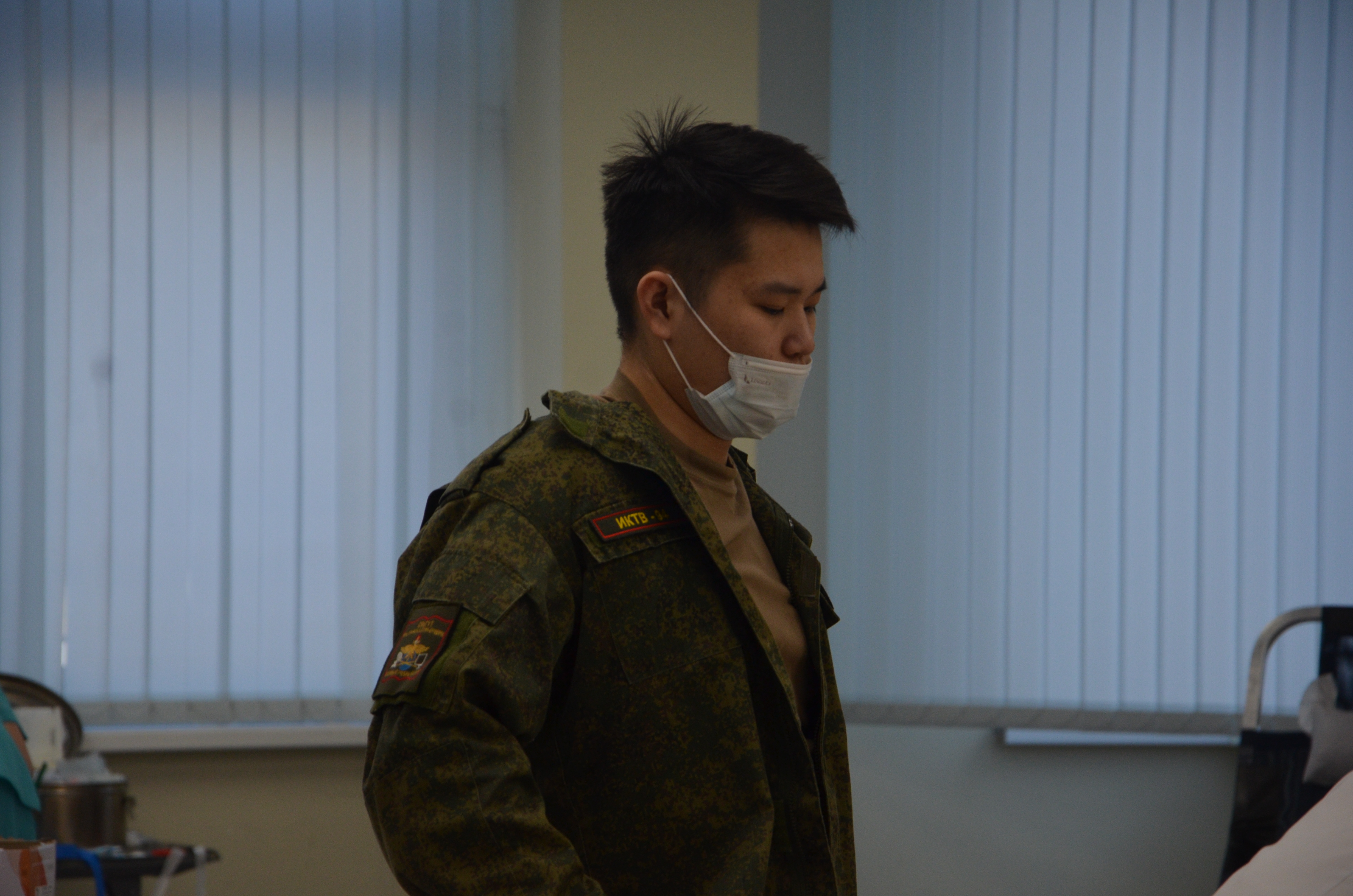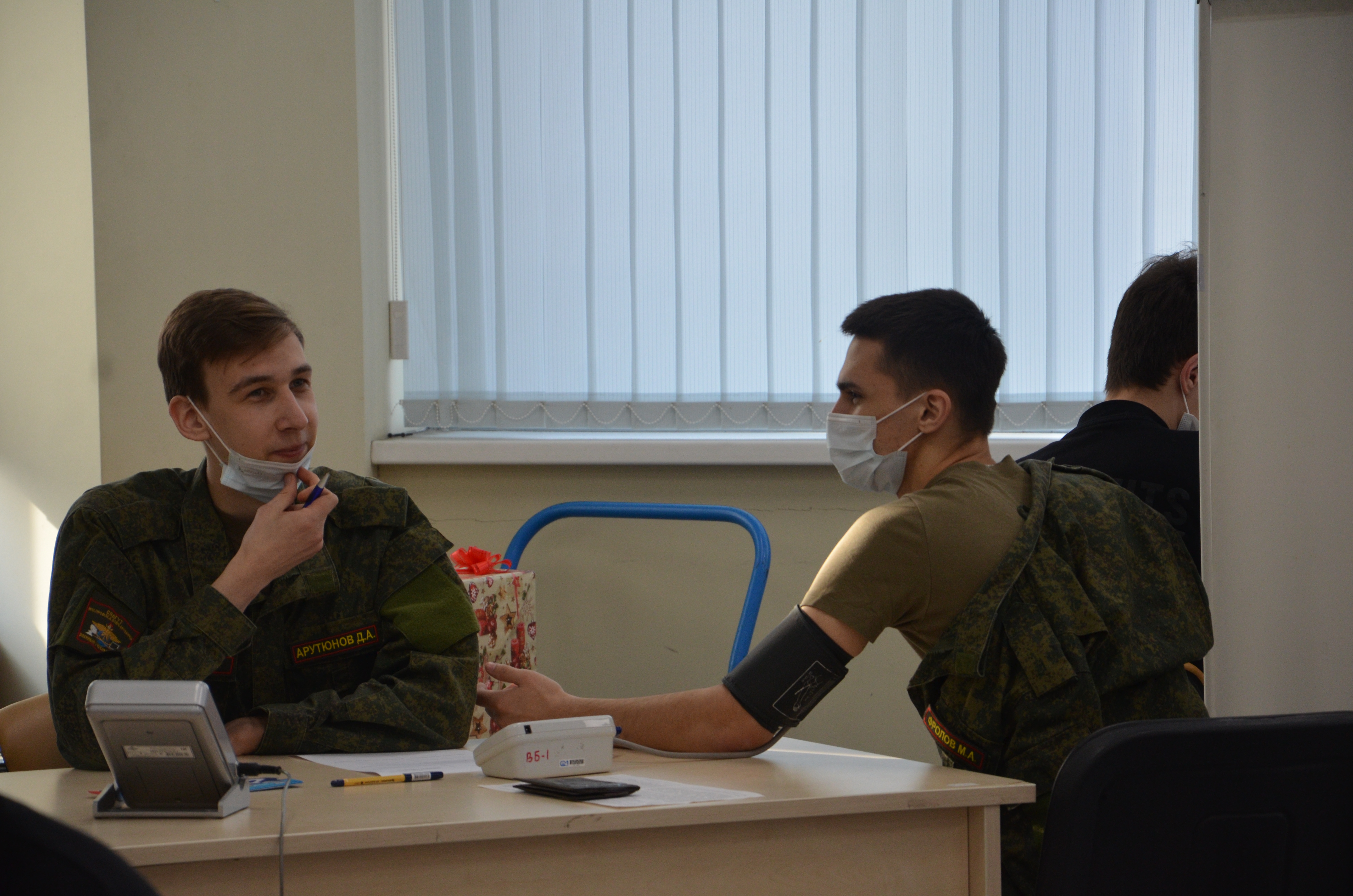 В качестве волонтеров по оказанию помощи работникам развернутого донорского пункта выступили студенты военного учебного центра.