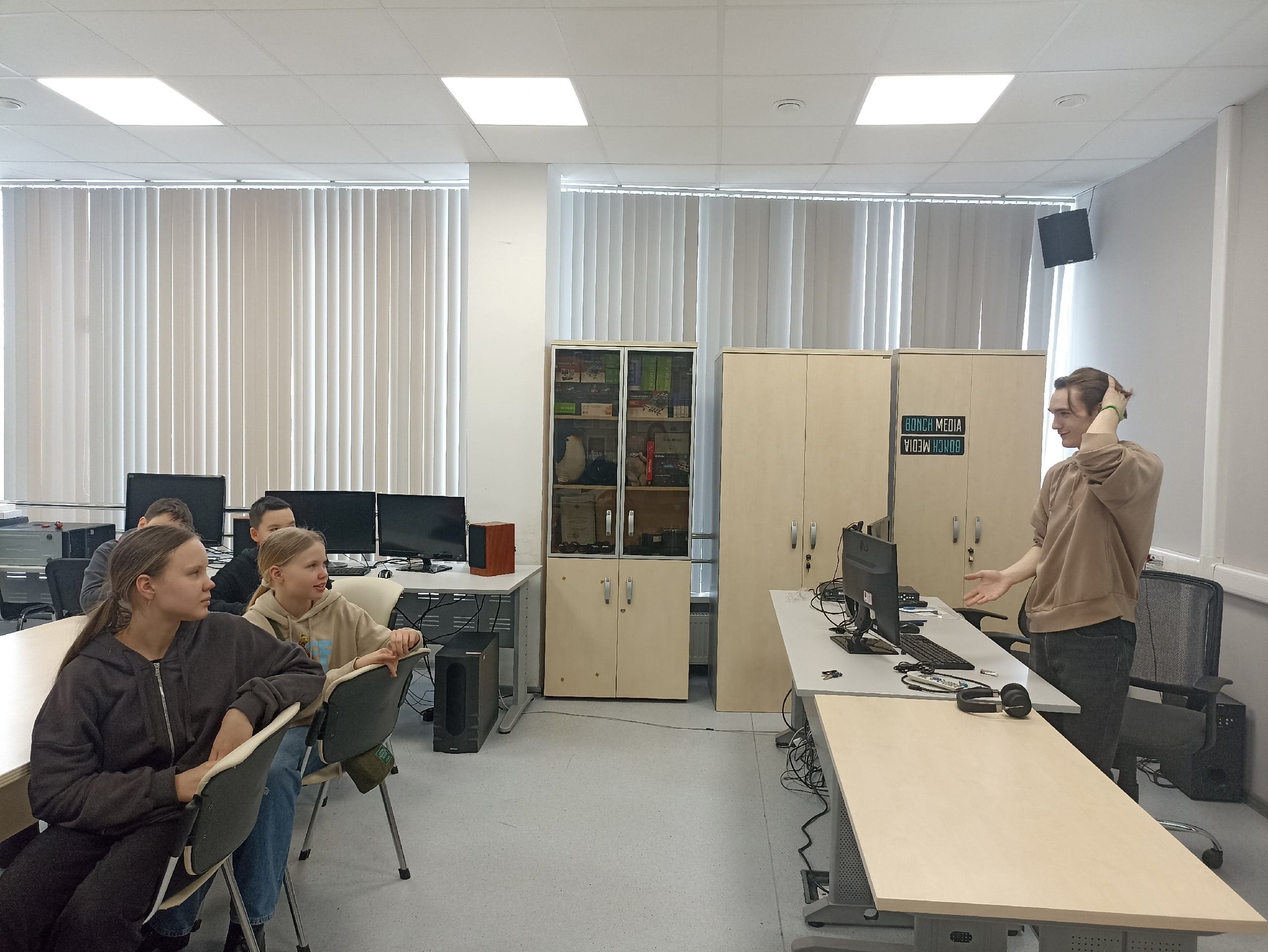 29 марта Санкт-Петербургский университет телекоммуникаций принял гостей из школы № 497 Невского района – учеников Центра детского и юношеского технического творчества «Старт+». Группа школьников 5 класса посетила мастер-класс по медиа-проектам и экскурсии в «Медиацентр» и культурно-просветительский центр «Музей СПбГУТ». Здесь они обучились навыкам, которые помогут им во время участия в национальном чемпионате творческих компетенций «ArtMasters».