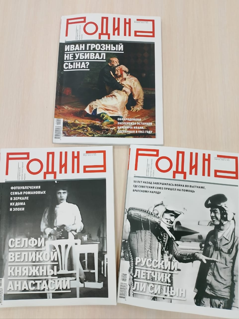 У читателей научно-технической библиотеки есть возможность познакомиться со статьями журнала «Родина» в читальном зале (к.100/2), библиографические описания статей представлены в электронном каталоге библиотеки.