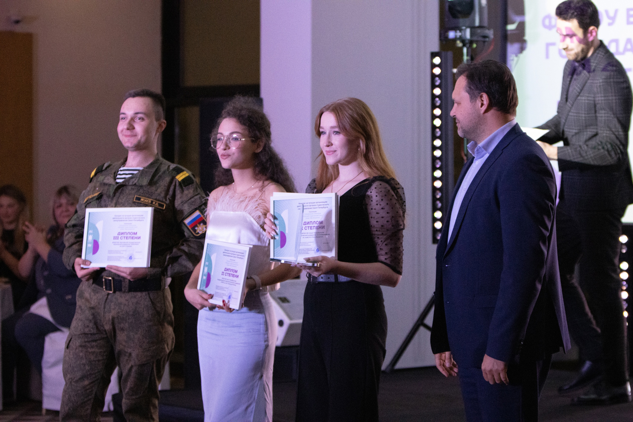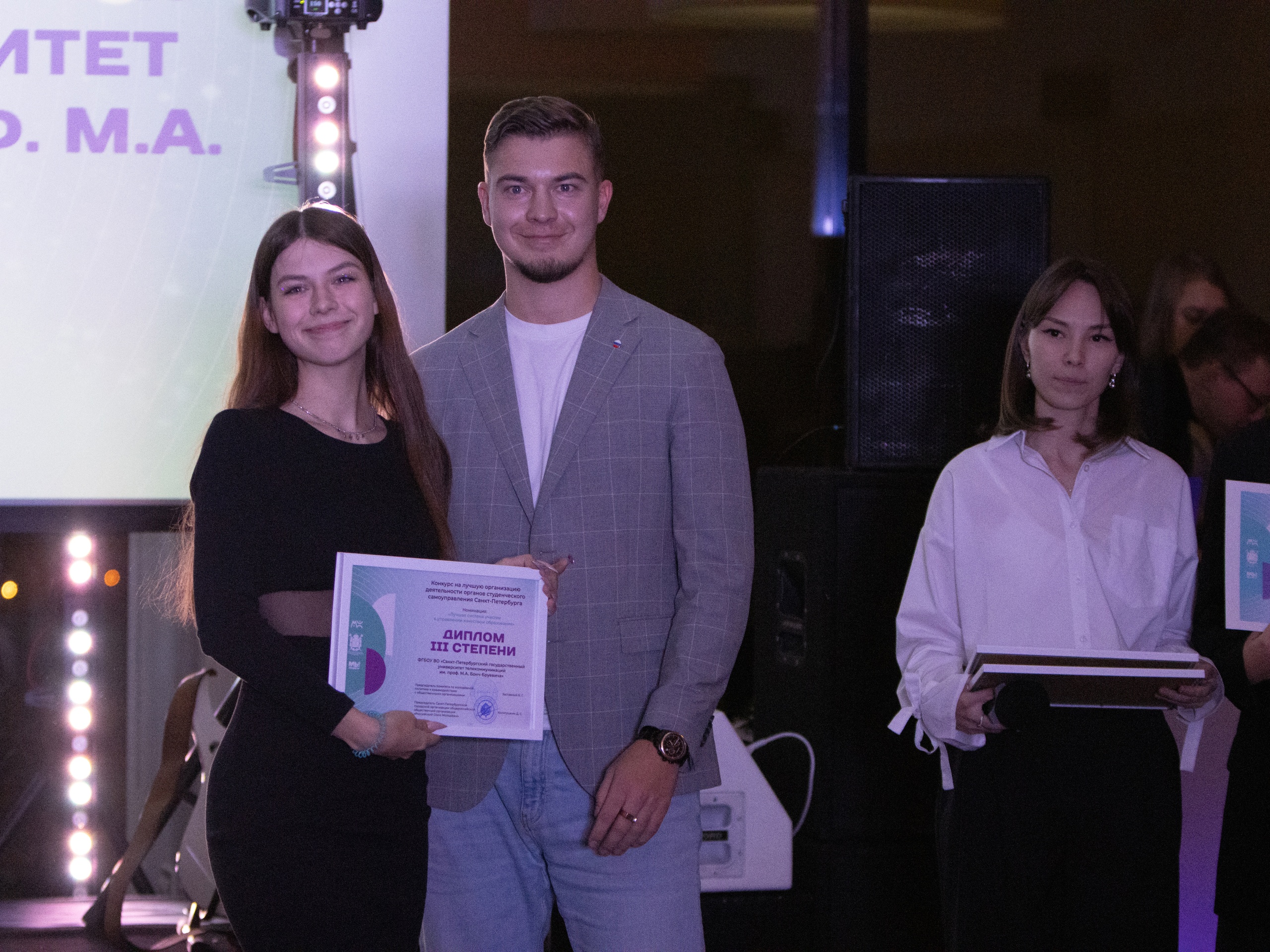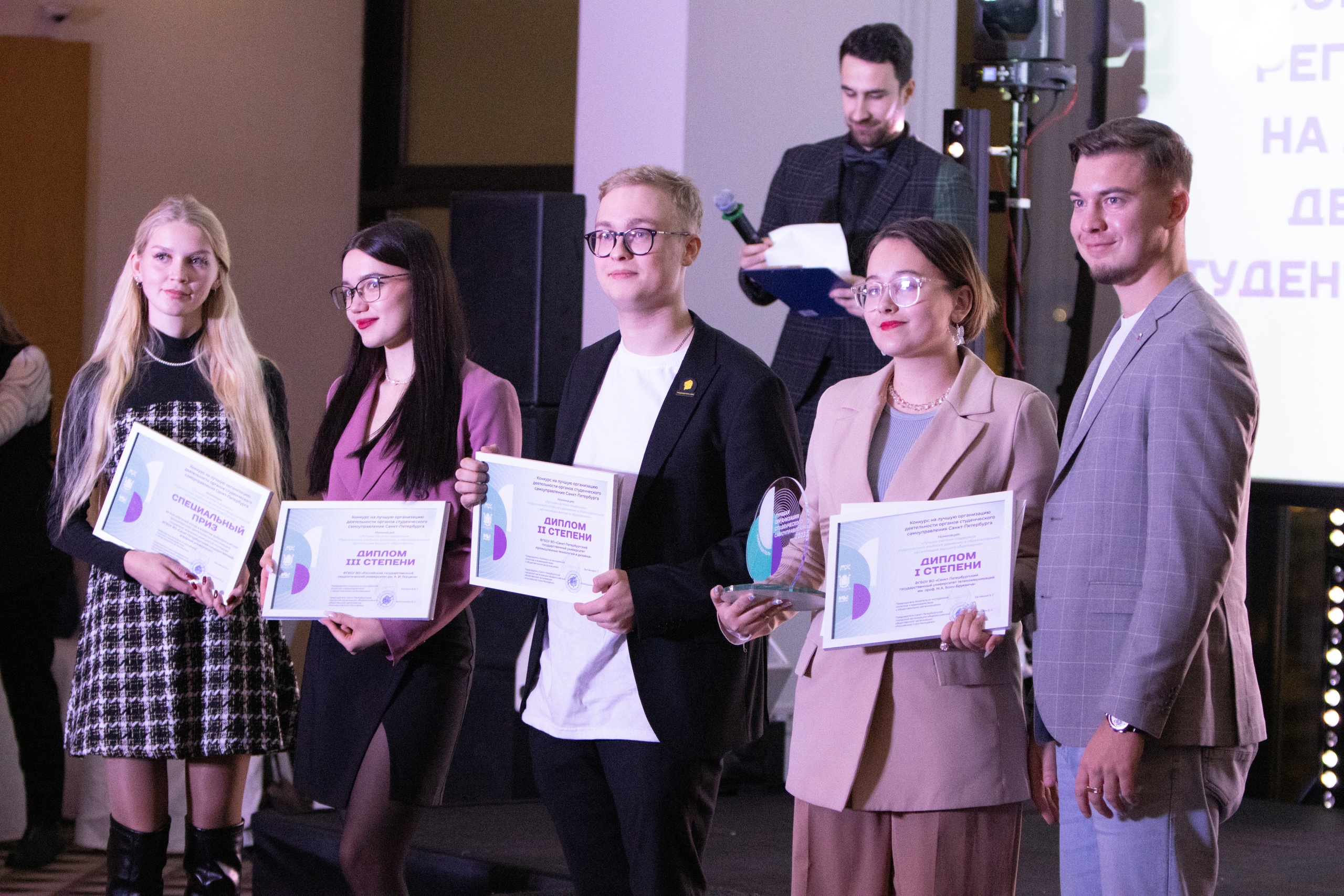 «Специальный приз “Лучший студенческий совет (совет обучающихся)»” получила команда Санкт-Петербургского государственного университета телекоммуникаций им. проф. М. А. Бонч-Бруевича. Представители этого вуза стали самыми активными участниками конкурса и набрали наибольшее количество баллов», – отметил председатель Комитета по молодежной политике и взаимодействию с общественными организациями Санкт-Петербурга Богдан Заставный.