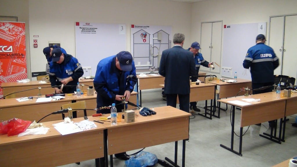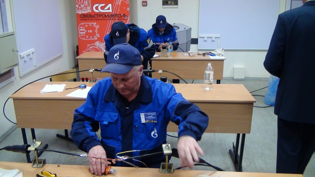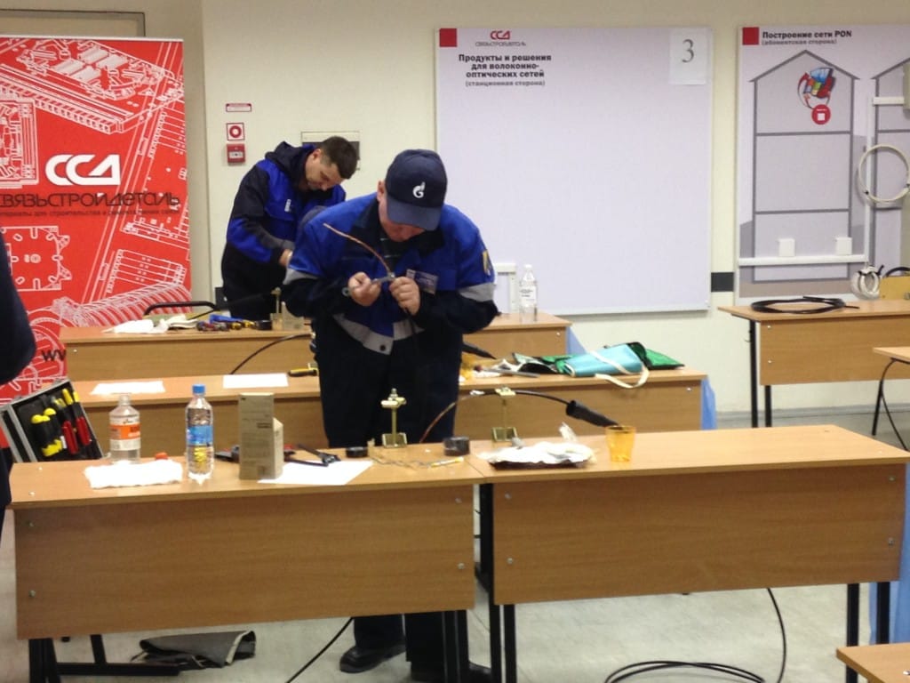 С 16 по 17 ноября в учебной лаборатории пассивной оптики колледжа Санкт-Петербургского университета телекоммуникаций имени проф. М.А. Бонч-Бруевича прошёл конкурс профессионального мастерства «Лучший кабельщик-спайщик связи ООО «Газпром трансгаз Санкт-Петербург», где организатором впервые выступила ЗАО «СВЯЗЬСТРОЙДЕТАЛЬ». Следует отметить, что открытая в колледже в марте этого года лаборатория была создана именно этой компанией совместно с ПАО «РОСТЕЛЕКОМ». Для проведения практической части корпоративного соревнования – выполнения конкурсных заданий по монтажу и измерениям параметров оптического кабеля, а также монтажу кабеля с медной жилой – в лаборатории были оборудованы специальные места.
