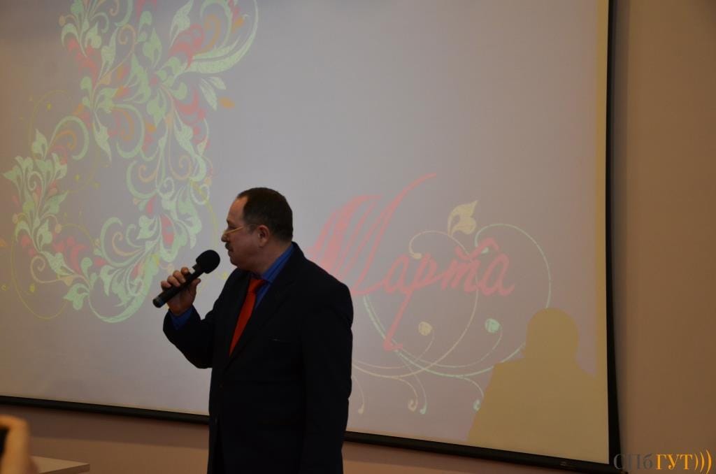 Искреннее восхищение женщинами прозвучало и в выступлении декана факультета ИКСС Льва Борисовича Бузюкова: «Сегодня в Петербурге нет солнца только потому, что оно не в состоянии соперничать с вашим светом. Женская мудрость останавливает войны и конфликты, женская красота спасает мир. Спасибо вам!».
