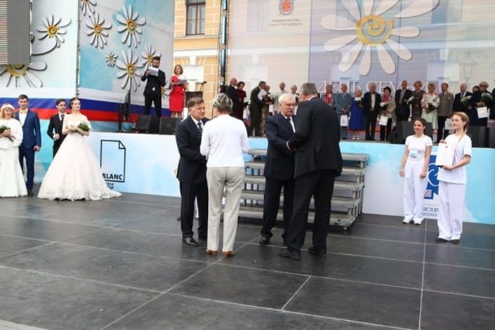 В рамках праздника состоялась церемония вручения медалей «За любовь и верность» семейным парам, прожившим вместе более 25 лет. Губернатор Санкт-Петербурга Георгий Полтавченко и председатель Законодательного Собрания Вячеслав Макаров торжественно вручили награду семье Воробьёвых, семейному союзу которых исполнилось 45 лет.