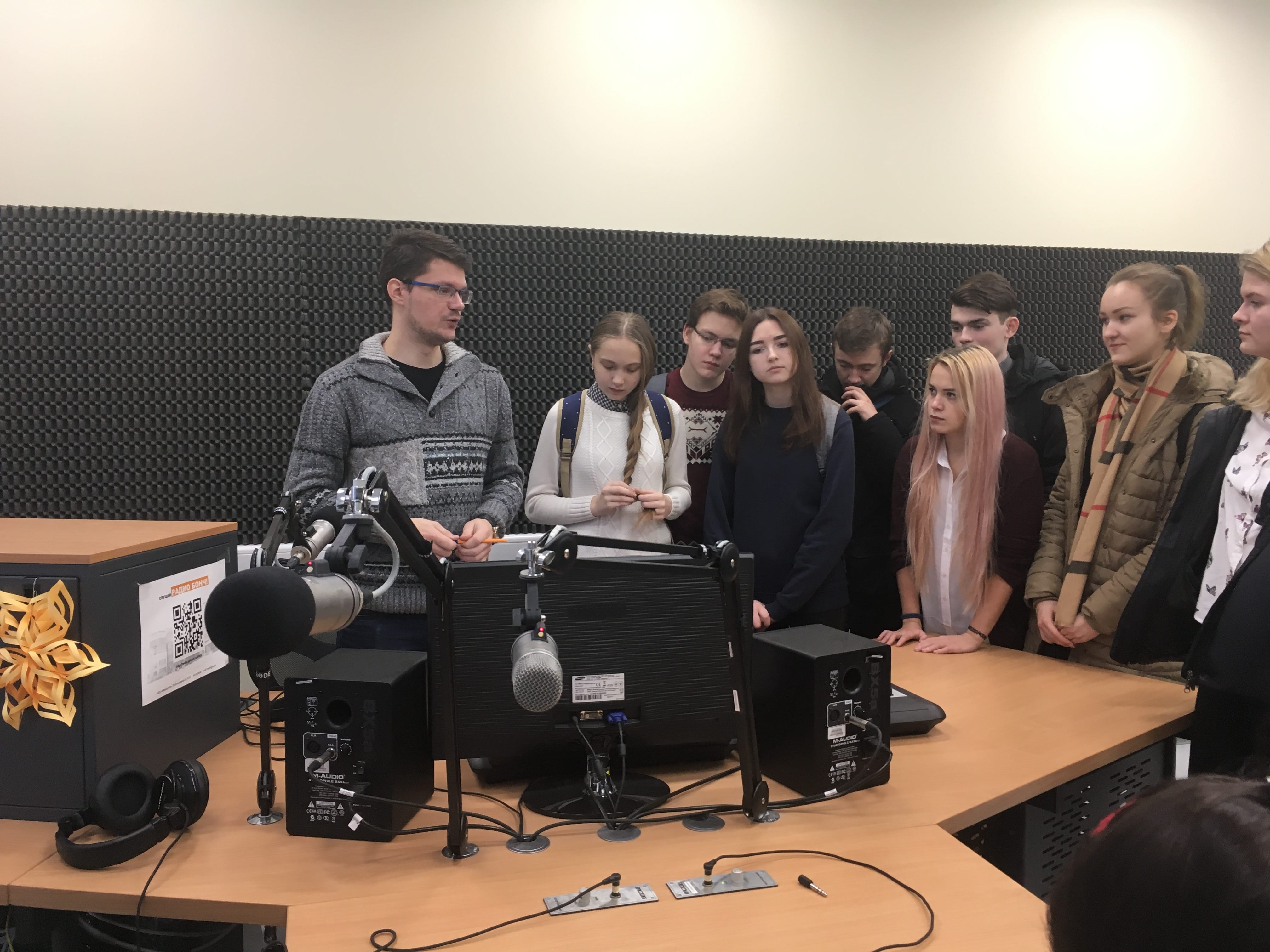 В Медиацентре ребятам рассказали, как готовятся радио- и теле-проекты, показали современное оборудование, на котором работают, в том числе и студенты, и даже дали попробовать себя в роли приглашенного гостя в радиостудии на записи передачи.