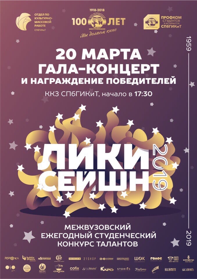 17 марта прошёл конкурсный отбор на Межвузовский ежегодный студенческий конкурс талантов «ЛИКИ СЕЙШН - 2019». СПбГУТ на конкурсе представляли: танцевальный коллектив «БончYes» с номерами в номинациях «Современный танец» и «Уличный танец» и Анастасия Зиновьева в вокальном направлении. Все наши артисты продемонстрировали очень высокий уровень подготовки.
