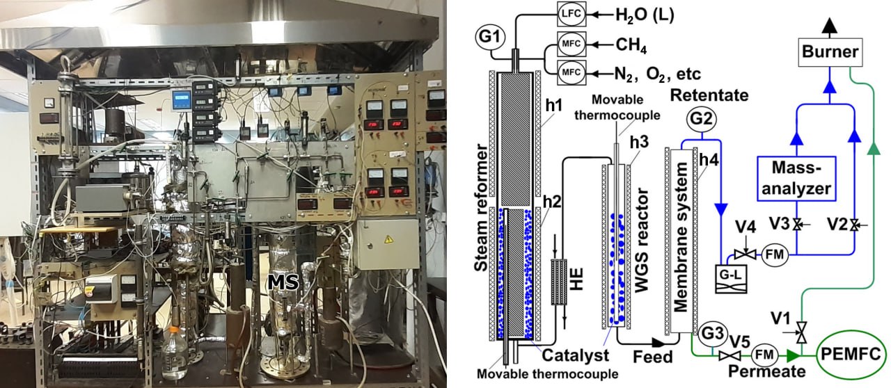 Учёные создали стенд, который демонстрирует высокоэффективное прямое [минуя стадию превращения топлива в тепло] преобразование химической энергии углеводородных топлив в электричество. Для реализации данного стенда используется инновационная мембранная технология, разработанная компанией «МЕВОДЭНА», которая позволяет из продуктов преобразования углеводородного топлива, например, природного газа, извлекать сверхчистый водород c чистотой 99,99998 %, который питает твердополимерный топливный элемент, генерирующий 1 кВт электрической мощности.