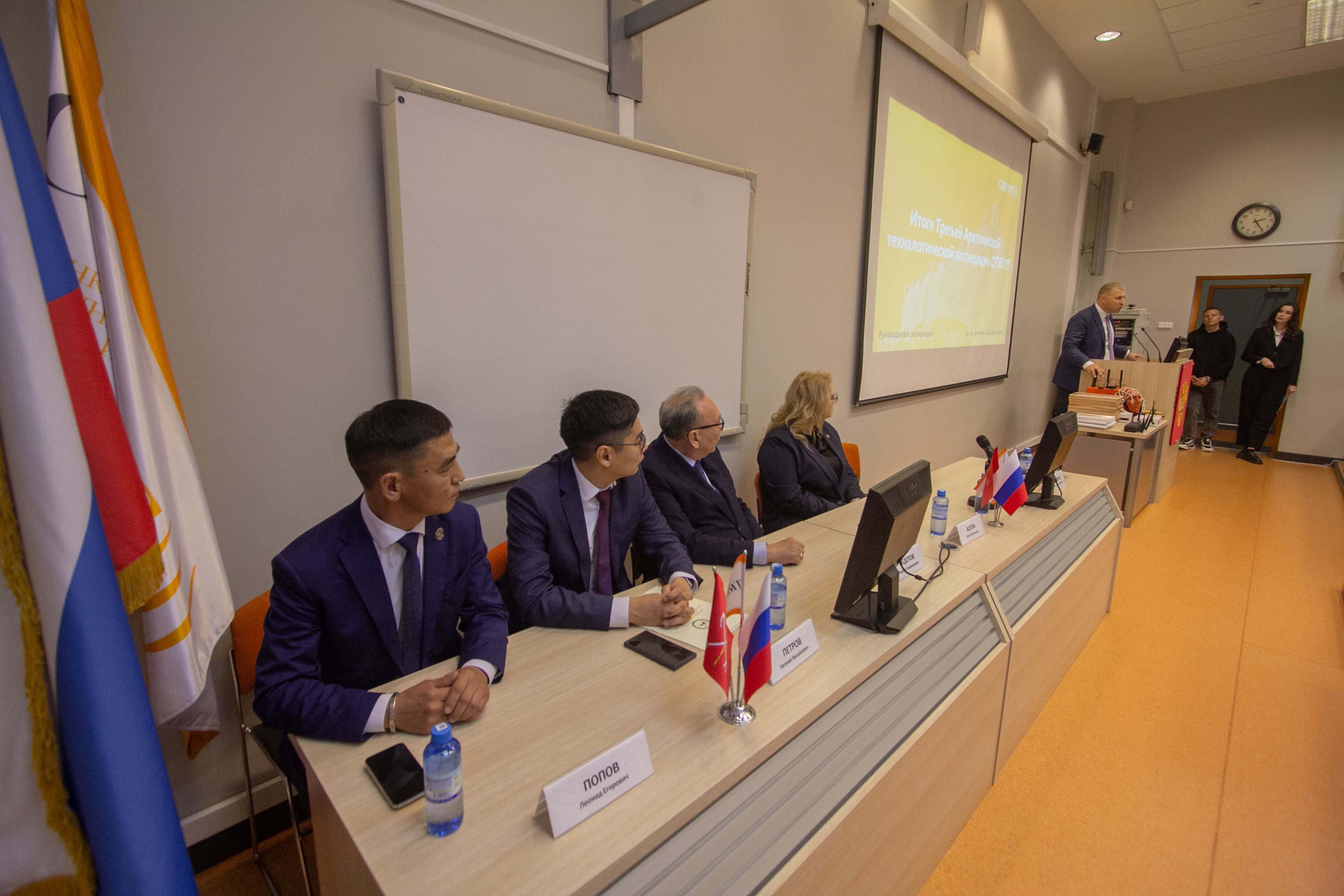 Первый заместитель главы администрации муниципального района «Булунский улус» Леонид Попов поприветствовал участников встречи от имени всех жителей пгт. Тикси. Он отметил, что уже в третий раз встречается с руководством института магистратуры СПбГУТ, и выразил надежду на продолжение совместной работы и организацию Четвёртой Арктической технологической экспедиции.