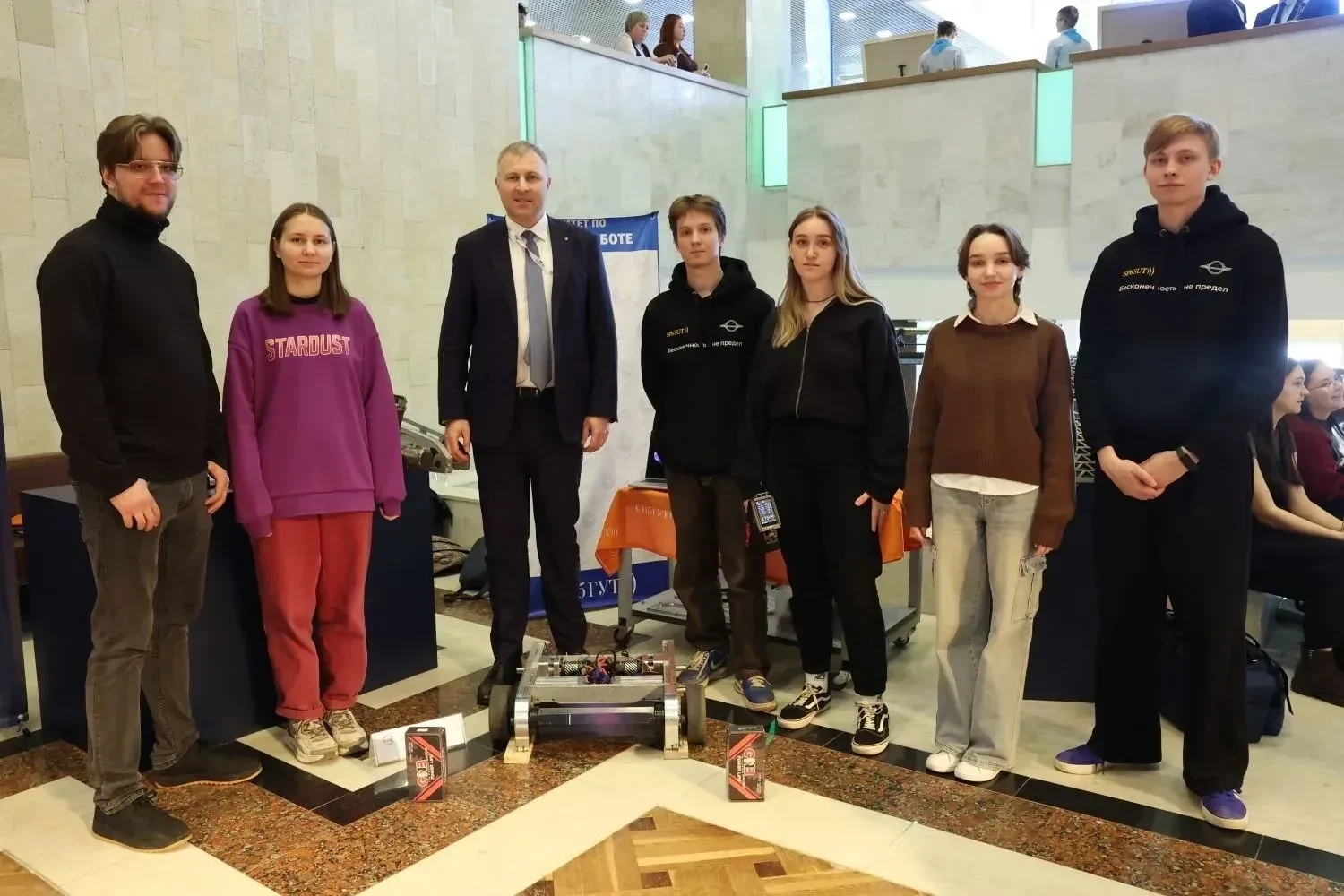 В этом году студенты Санкт-Петербургского государственного университета телекоммуникаций им. проф. М. А. Бонч-Бруевича представили на экспозиции трех роботов в категории до 110 килограммов.