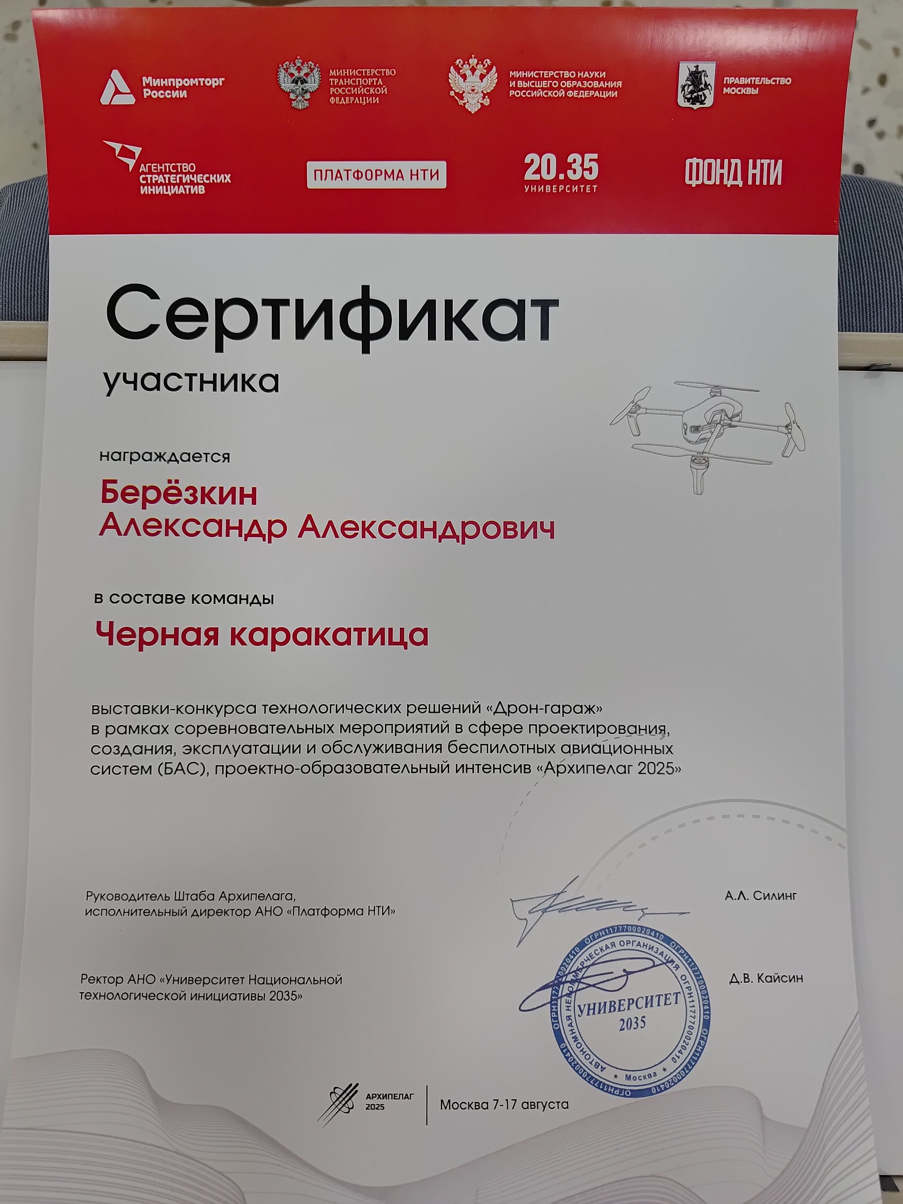 Команда СПбГУТ «Чёрная каракатица» представила проект «Система FPV-управления БАС в гибридных и спутниковых сетях связи». Это программно-аппаратный комплекс для кодирования и передачи FPV-видеопотока при управлении беспилотными авиационными системами от первого лица.