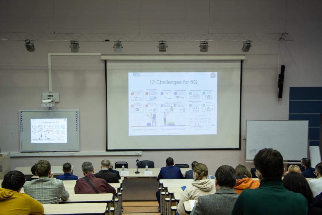 В ноябре СПбГУТ и РУДН с участием международных экспертов провели научный семинар «Искусственный интеллект: математика и сети связи». Состоялась презентация новой модельной лаборатории услуг телеприсутствия на базе кафедры сетей связи и передачи данных СПбГУТ.