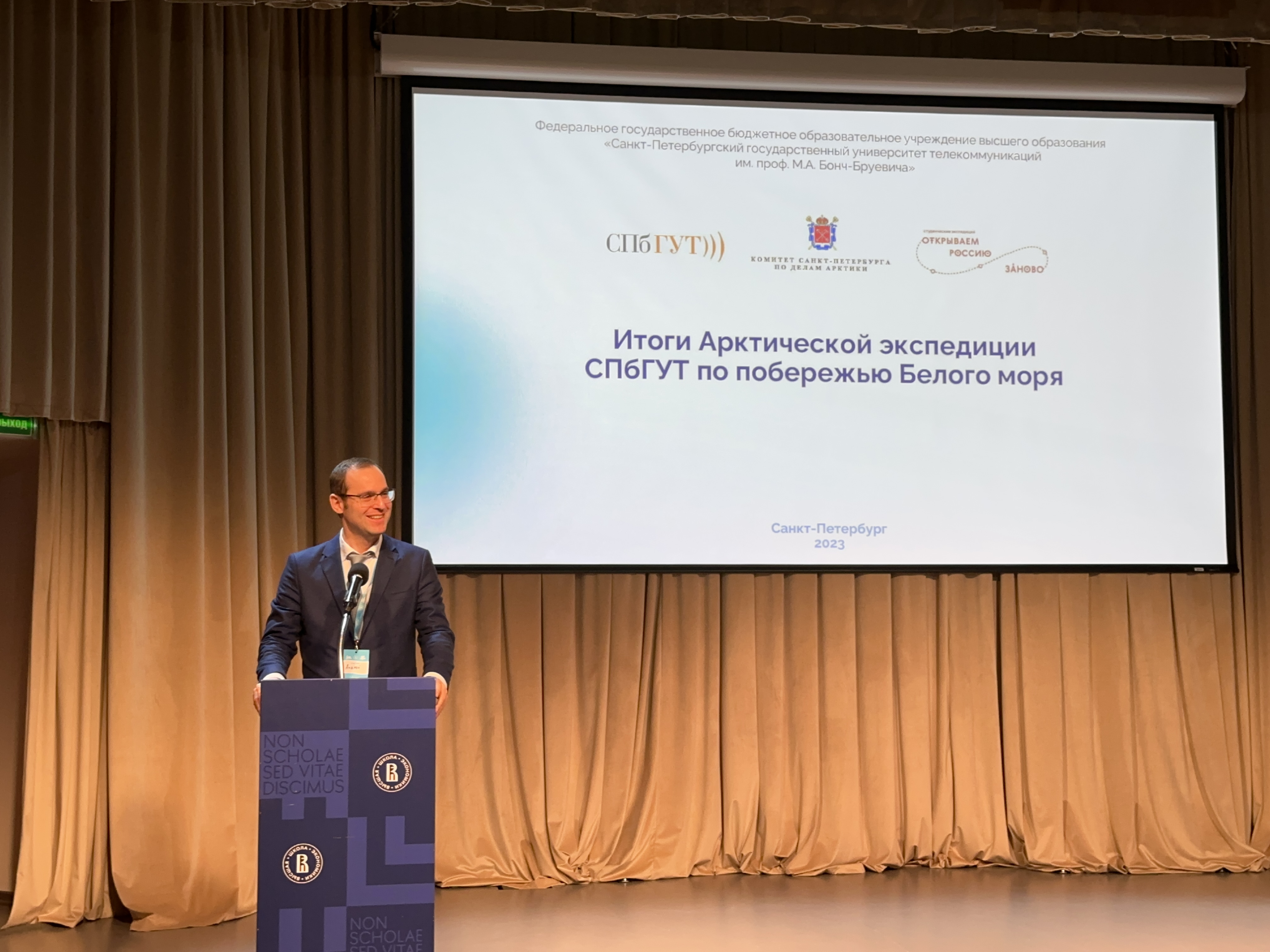 На форуме состоялись пленарная дискуссия об итогах сезона 2023 года, награждение победителей по номинациям, выступления наставников, мастер-классы. Руководитель экспедиции СПбГУТ Андрей Степанов выступил на «Открытом микрофоне», где рассказал о своем опыте участия в экспедиции и представил результаты работы.