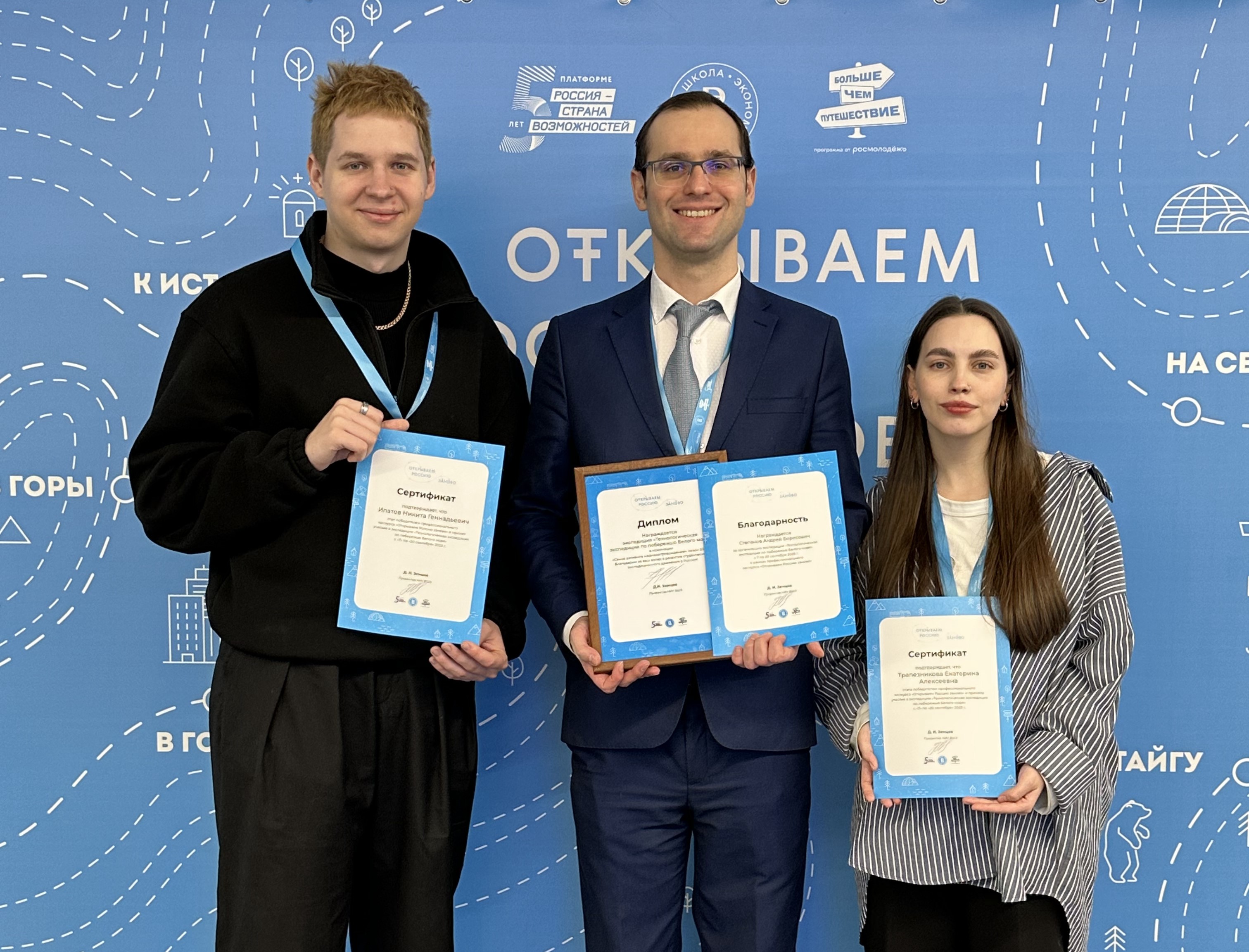 По итогам профессионального конкурса «Открываем Россию заново» арктическая технологическая экспедиция СПбГУТ 2023 года стала победителем в номинации «Самое активное медиасопровождение». Победа стала возможной благодаря активности и открытости участников экспедиции, которые встречались с журналистами Поморья, ежедневно вели и публиковали #АрктическийДневник. Освещением работы молодых ученых также занимались специалисты управления маркетинга и рекламы и Медиацентра СПбГУТ.