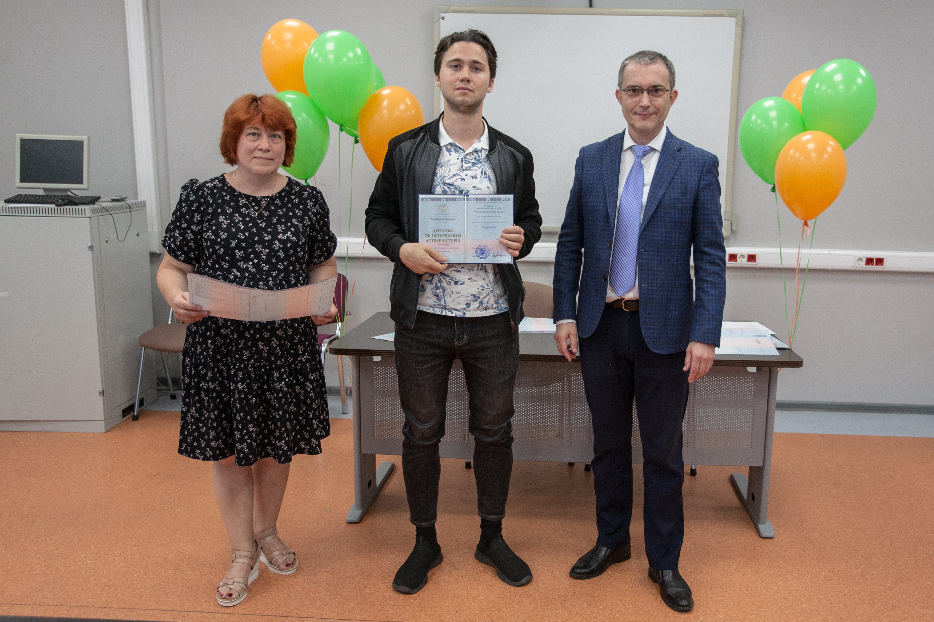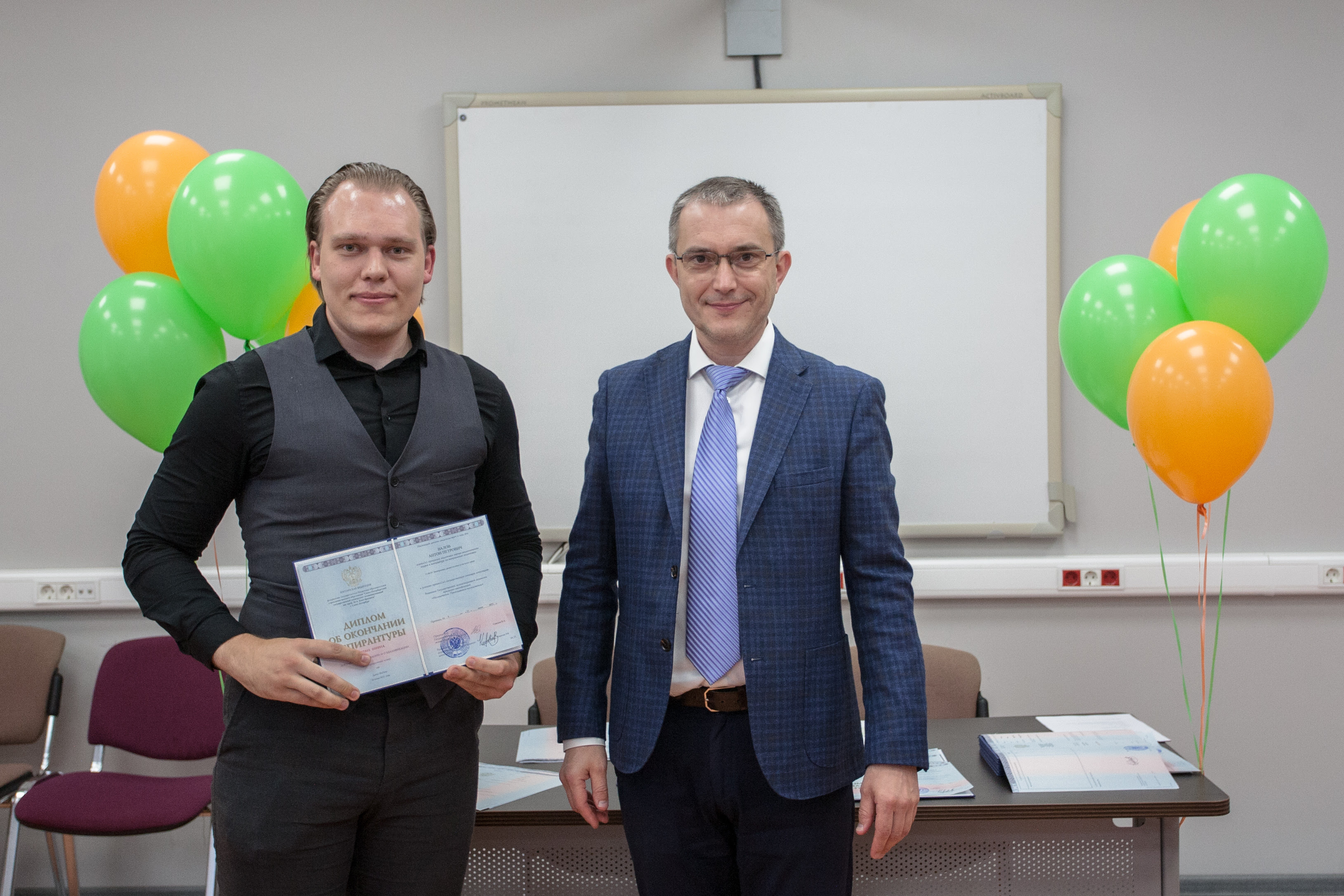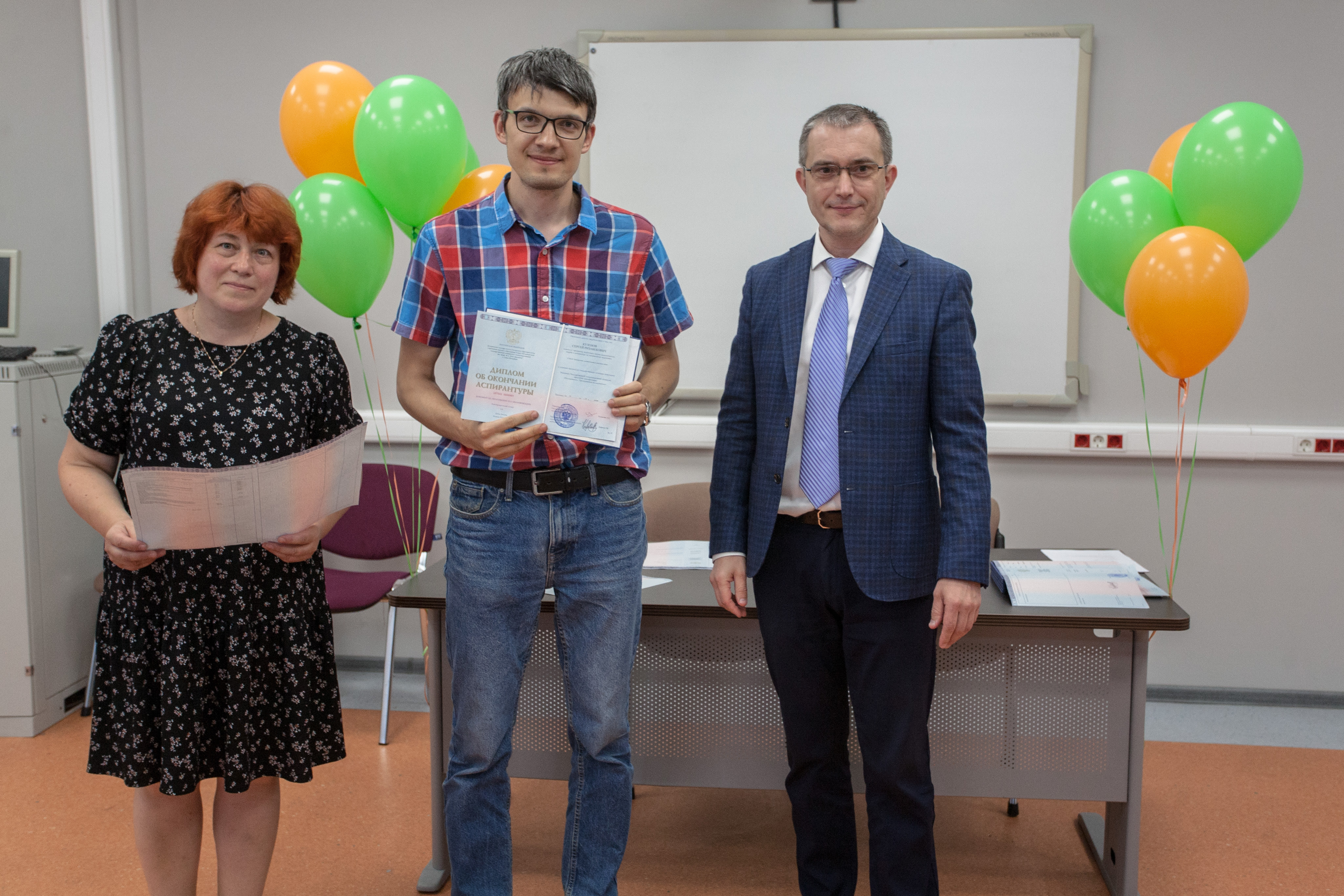 Церемонию вручения дипломов и чествования выпускников провели начальник управления организации научной работы и подготовки научных кадров Алексей Нестеров и начальник отдела аспирантуры и докторантуры Алина Федорова. Они поздравили выпускников и пожелали им развития научной карьеры.