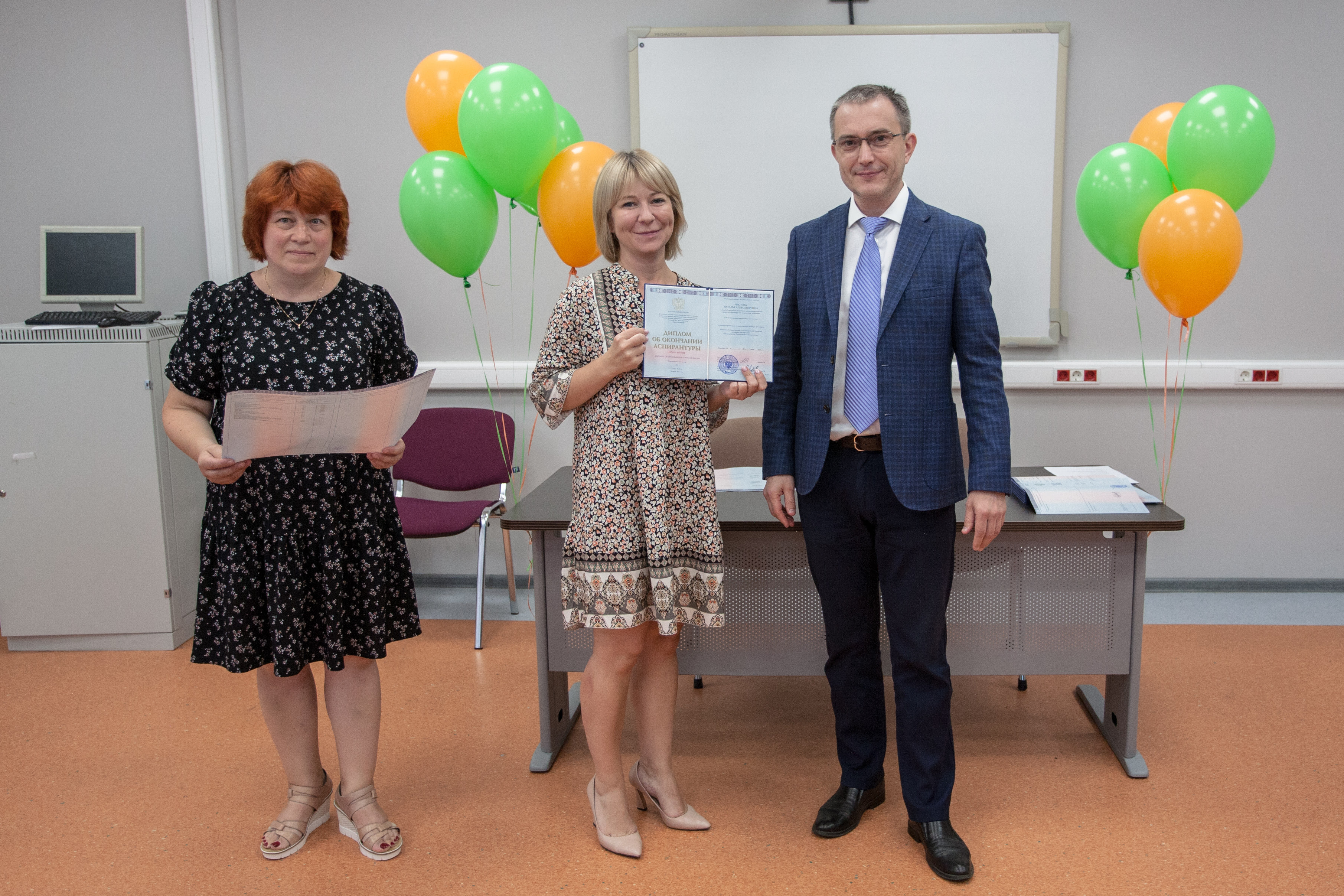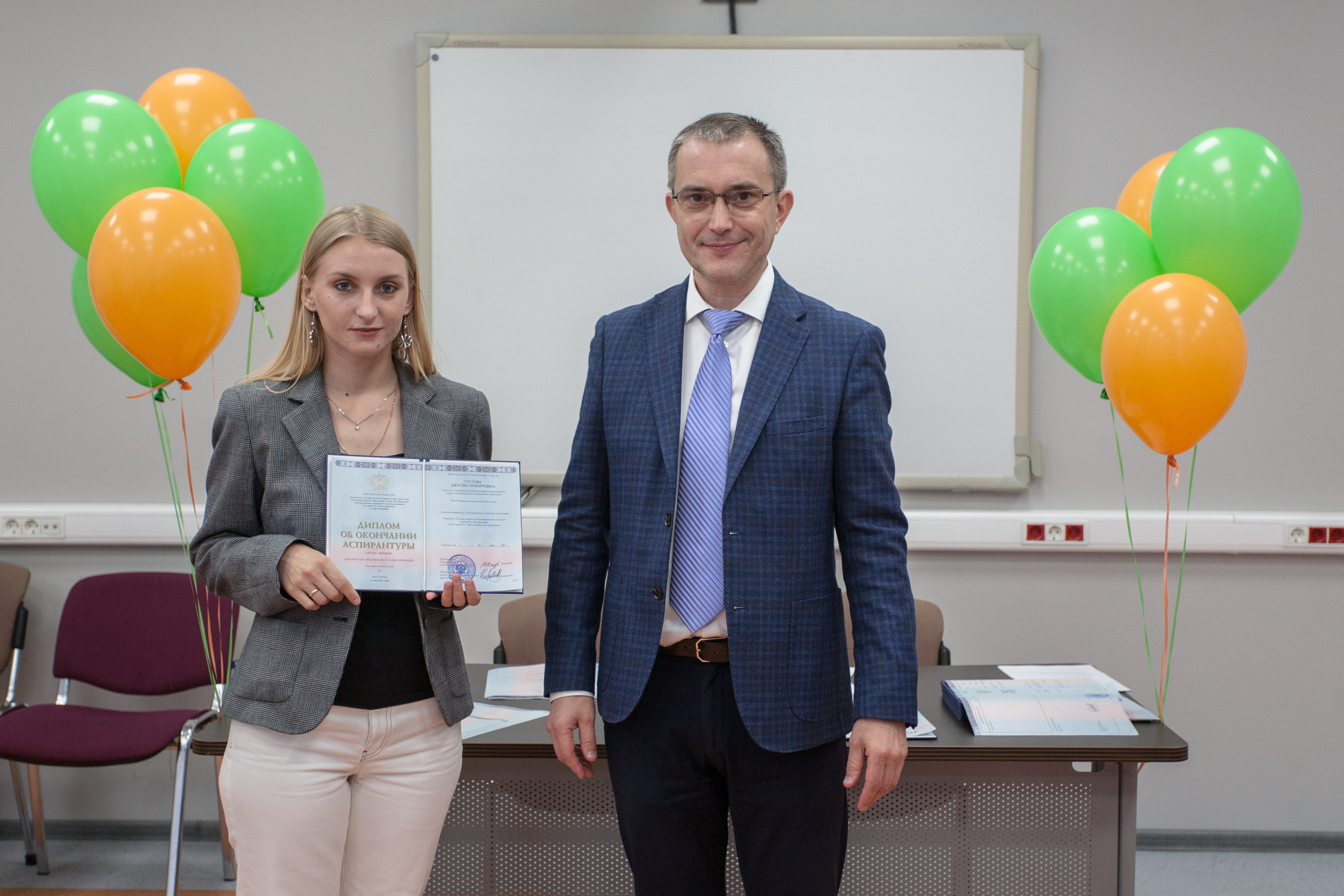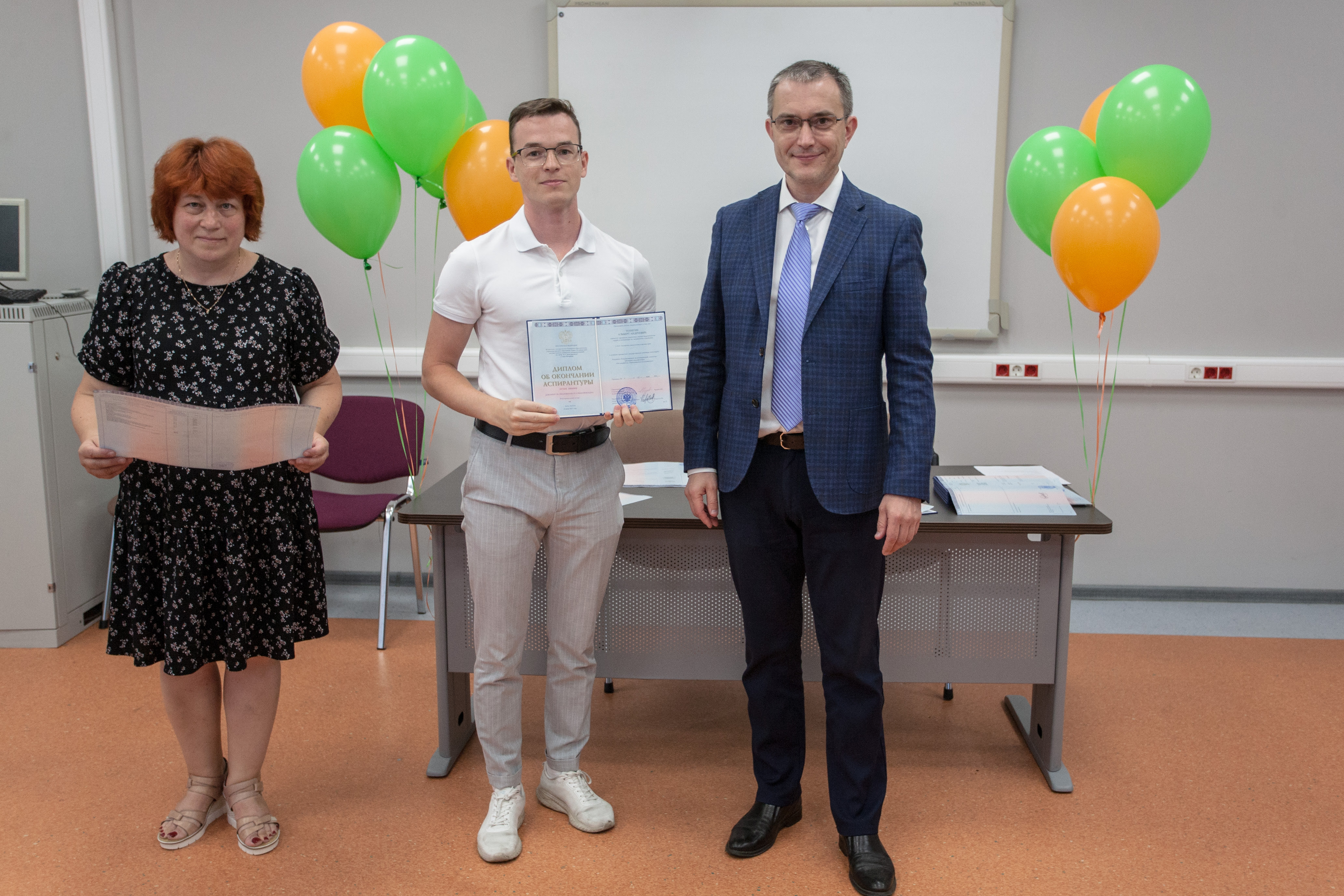 Церемонию вручения дипломов и чествования выпускников провели начальник управления организации научной работы и подготовки научных кадров Алексей Нестеров и начальник отдела аспирантуры и докторантуры Алина Федорова. Они поздравили выпускников и пожелали им развития научной карьеры.
