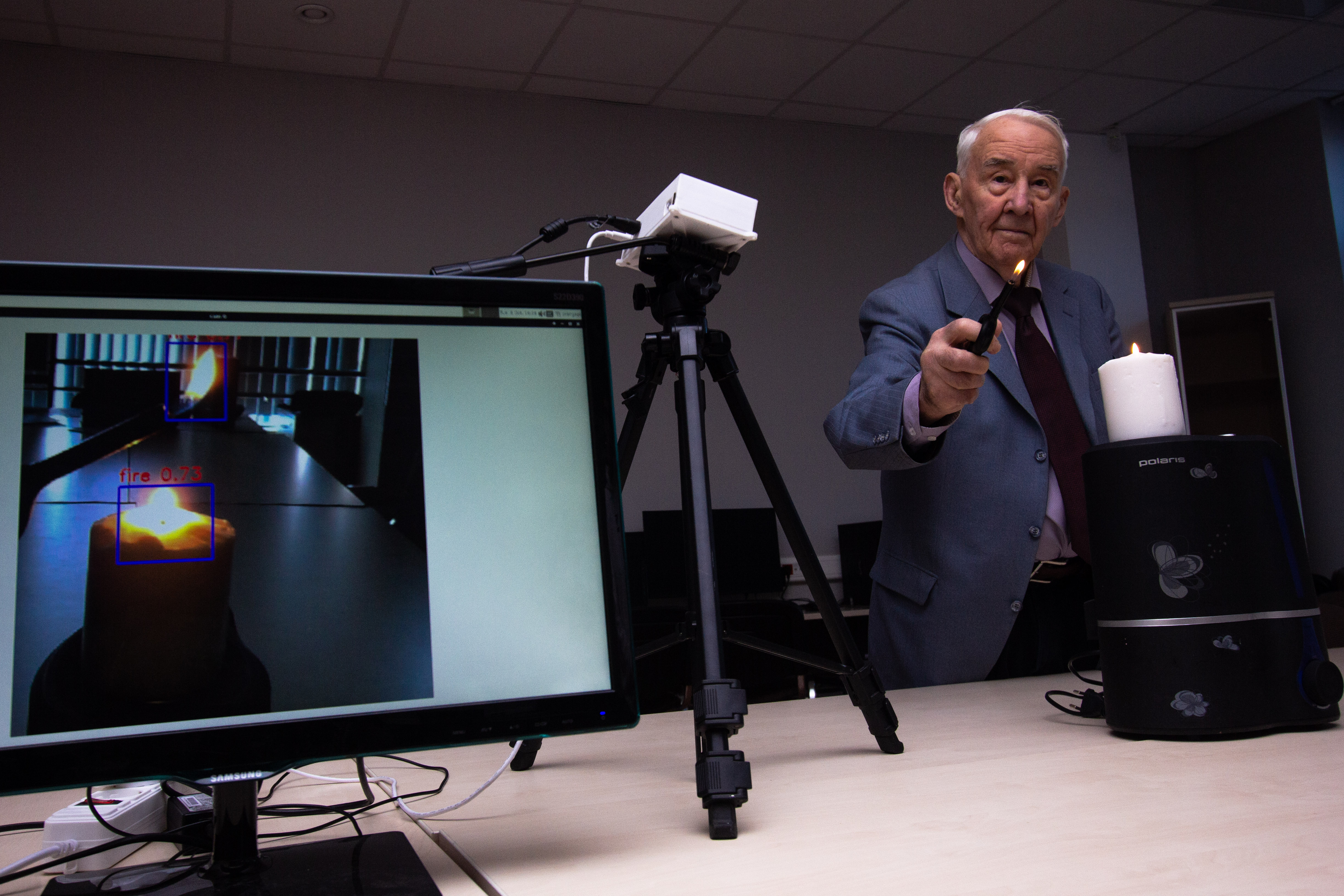 «Практически на любых промышленных объектах существует развитая система телевизионного наблюдения. В некоторых случаях количество камер достигает нескольких сотен. Наблюдение оператором за обстановкой на таком количестве камер одновременно может быть неэффективно. Эффективность разработанной нами системы значительно превосходит функции существующих пожарных извещателей. Она может оперативно, за 3–10 секунд, обнаружить предаварийные ситуации, визуально определить местоположение, задействовать существующие системы оптико-электронного наблюдения. В системе используются оптико-электронные датчики для обнаружения предаварийной ситуации в больших помещениях и на открытых пространствах», – отмечает доцент кафедры, к. т. н. Владимир Тимченко.