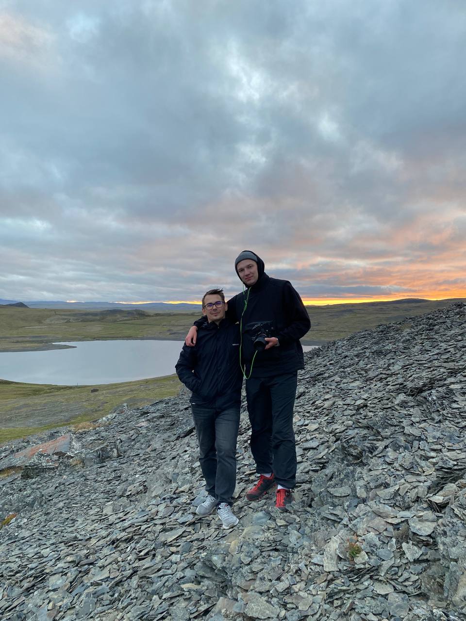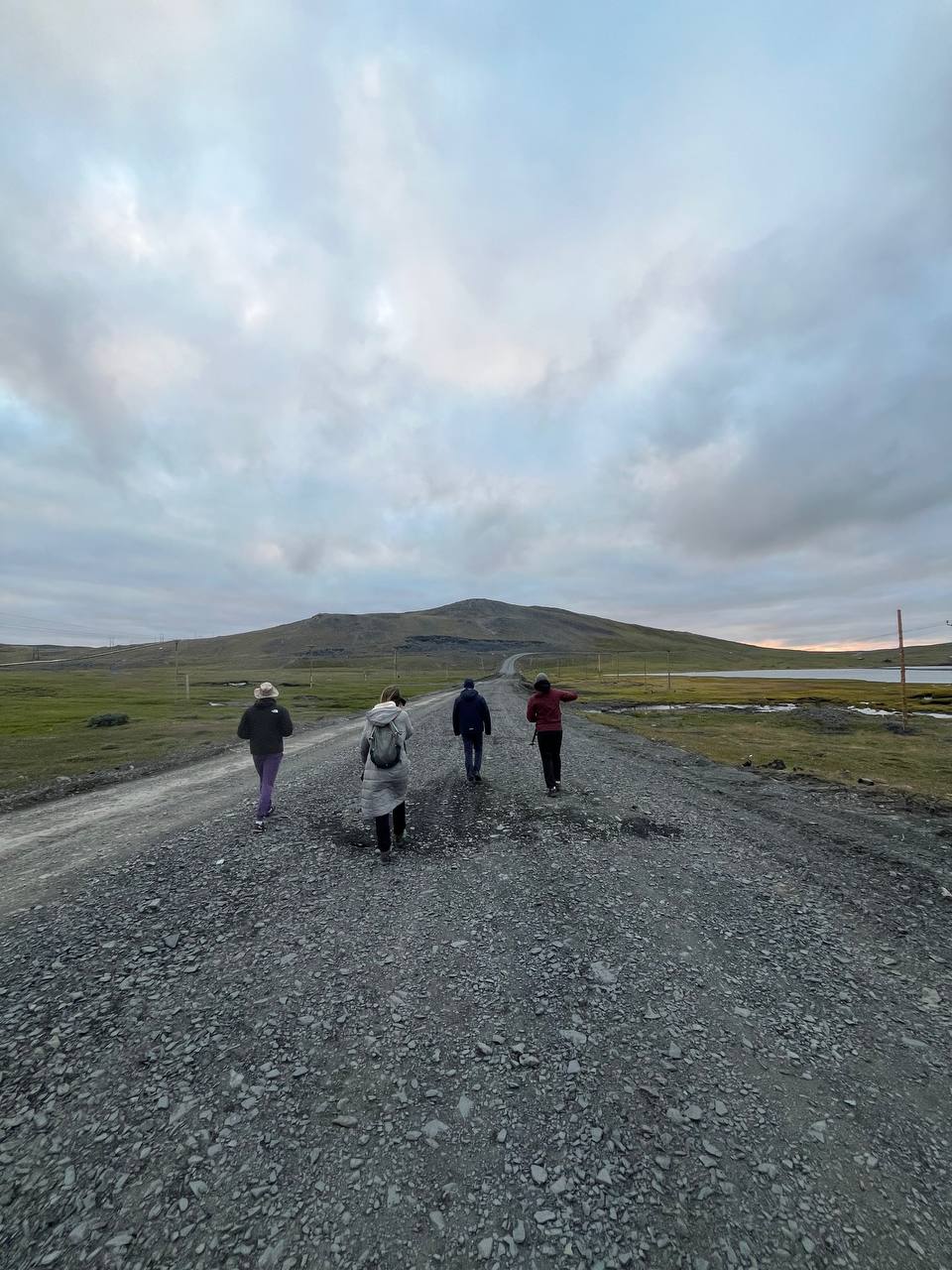 Позавтракав, ребята отправились на полевые работы. В качестве места для проведения исследований было выбрано поле, в центре которого под воздействием окружающей среды из земли обнажились несколько ледников. Неподалёку от поля протекал ручей и возвышались горы.