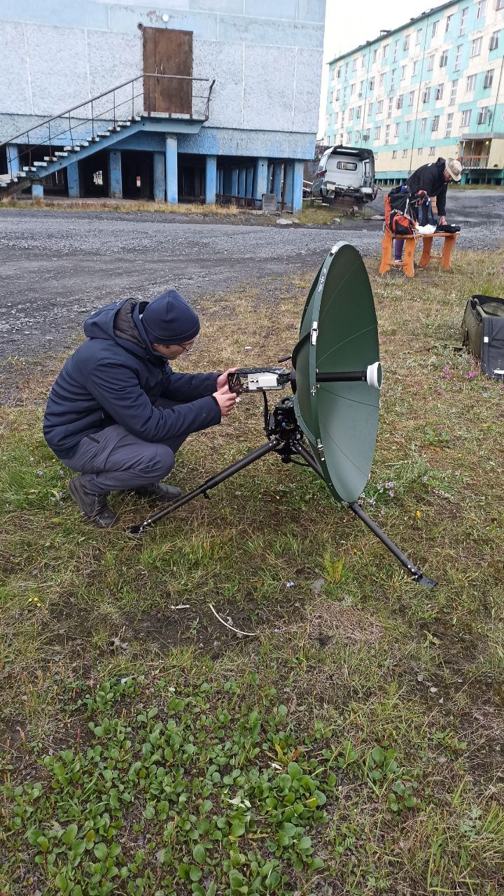 На пятый день стартовали исследования в пгт. Тикси – развернута спутниковая станция «СНАРК-100Р», сеть спутникового приёмопередатчика, проведены полевые работы и оценка общей экологической обстановки в посёлке.