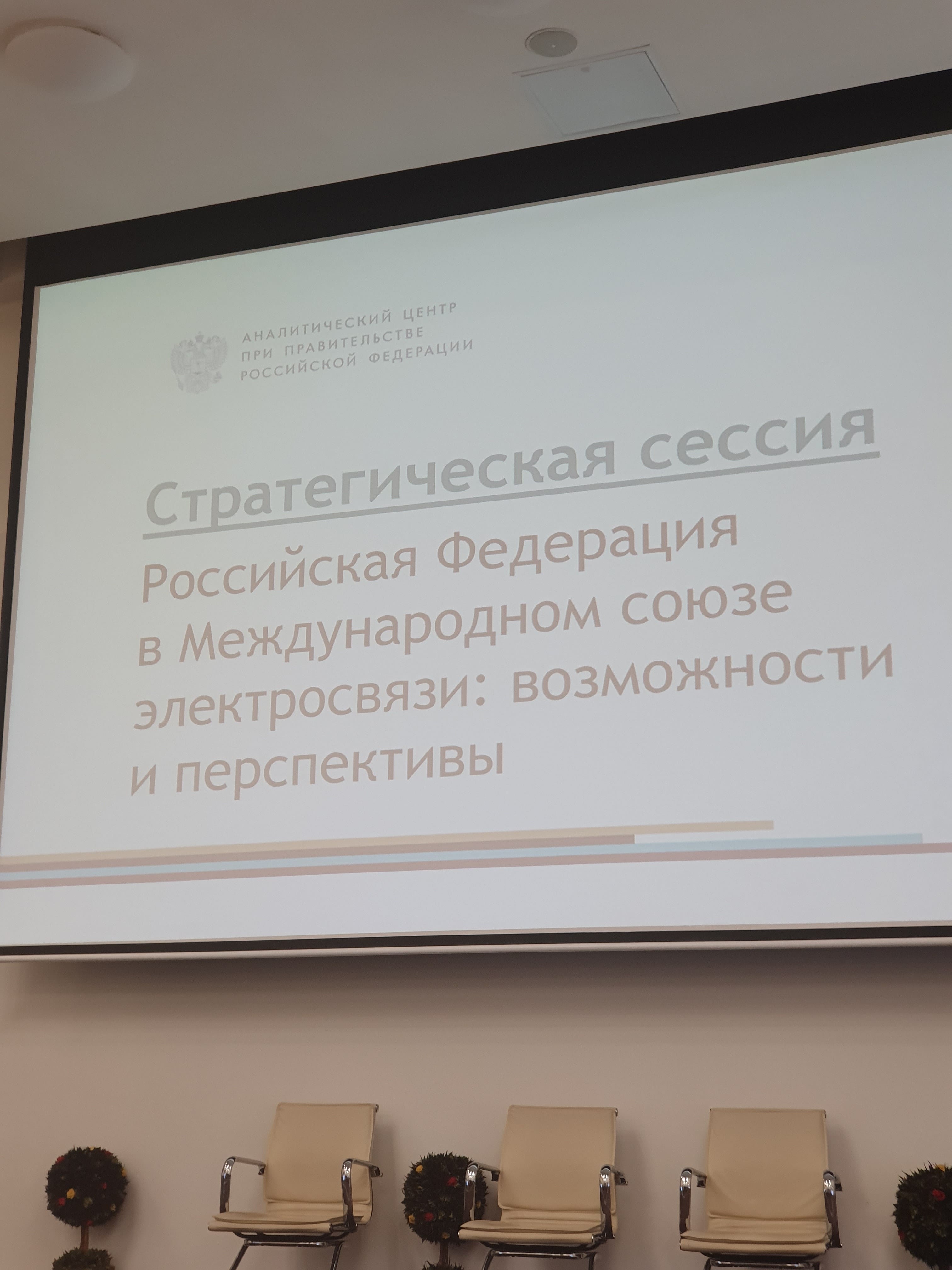 25 сентября в Аналитическом центре при Правительстве Российской Федерации при поддержке Министерства цифрового развития, связи и массовых коммуникаций Российской Федерации состоялась стратегическая сессия по теме: «Российская Федерация в Международном союзе электросвязи: возможности и перспективы». В мероприятии приняли участие эксперты СПбГУТ, МТУСИ, НИИР, ЦНИИС.
