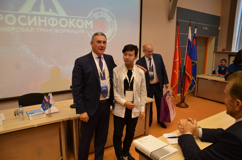 В рамках пленарного заседания грамота и ценный подарок за победу в чемпионате мира по профессиональному мастерству WorldSkills Kazan 2019 по компетенции «Сетевое и системное администрирование Junior» были вручены ученику Санкт-Петербургского Президентского физико-математического лицея №239 Андрею Мешкову. Отметим, что столь значимого результата Андрей достиг под наставничеством Максима Жигжитова – сотрудника Бурятского института инфокоммуникаций СибГУТИ. Поздравляя Андрея, О.Г. Духовницкий пожелал ему новых успехов и стать в дальнейшем студентом Санкт-Петербургского государственного университета телекоммуникаций.