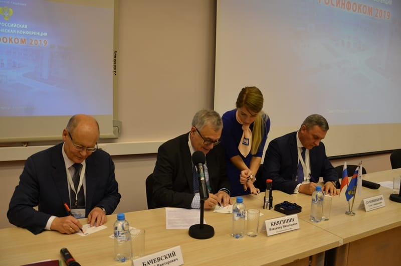 9 октября на площадке Санкт-Петербургского государственного университета телекоммуникаций им. проф. М. А. Бонч-Бруевича состоялась V Всероссийская научно-техническая конференция с международным участием «Модернизация информационной инфраструктуры для сетей 5G/IMT 2020 и для других перспективных технологий в интересах цифровой трансформации регионов. РОСИНФОКОМ-2019», организованная Федеральным агентством связи.