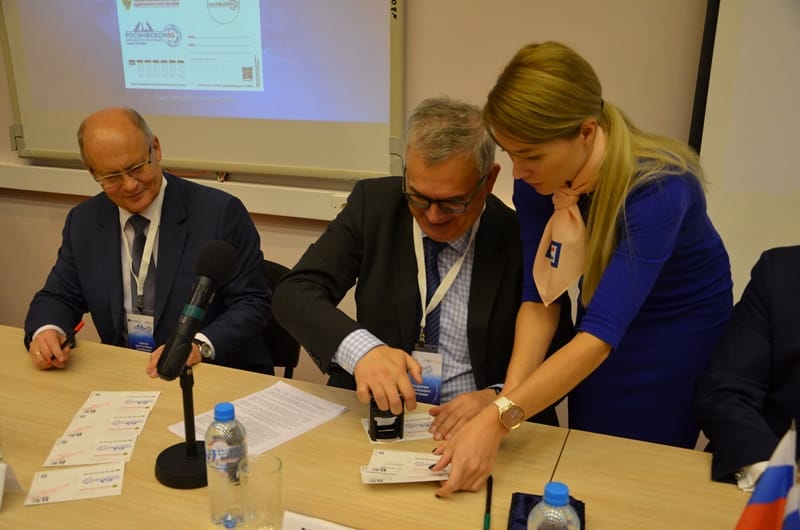 Завершилось торжественное открытие конференции церемонией памятного гашения художественной почтовой карточки, посвящённой V Всероссийской научно-технической конференции с международным участием «Модернизация информационной инфраструктуры для сетей 5G/IMT 2020 и для других перспективных технологий в интересах цифровой трансформации регионов. РОСИНФОКОМ-2019».