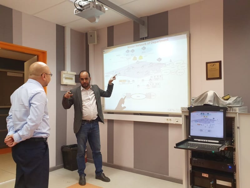 От СПбГУТ во встрече приняли участие начальник отдела международного сотрудничества И.И. Каримова, начальник института магистратуры А.Н. Бучатсткий, профессор кафедры сетей связи и передачи данных Р.В. Киричёк и доцент кафедры сетей связи и передачи данных Мутханна Аммар Салех Али.