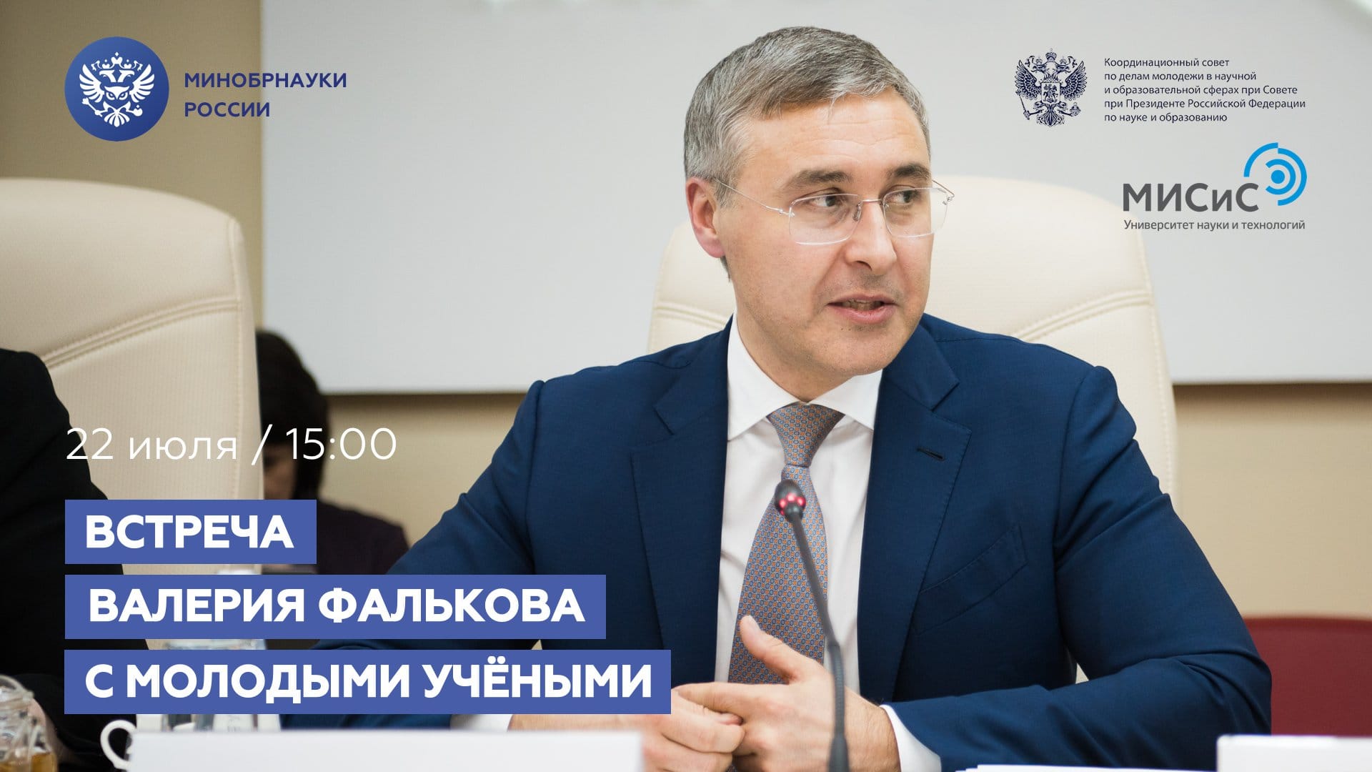 22 июля в 15:00 Министр науки и высшего образования РФ Валерий Фальков проведет встречу с молодыми учеными и ответит на волнующие их вопросы.