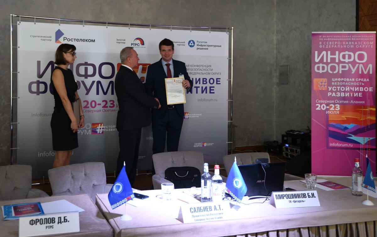 22 июля в Северной Осетии завершилась 3-я Межрегиональная конференция по информационной безопасности в СКФО «Инфофорум-Устойчивое развитие». На протяжении двух дней эксперты крупных компаний в области защиты информации (ПАО «Ростелеком», «Доктор Веб» и др.) и государственных органов власти обсуждали новые способы предотвращения компьютерных атак, делились своим мнением по поводу повышения защищенности современного информационного пространства. От СПбГУТ в мероприятии приняли участие заведующий кафедрой ЗСС, к.т.н., Андрей Владимирович Красов и старший преподаватель кафедры ЗСС Игорь Александрович Ушаков.