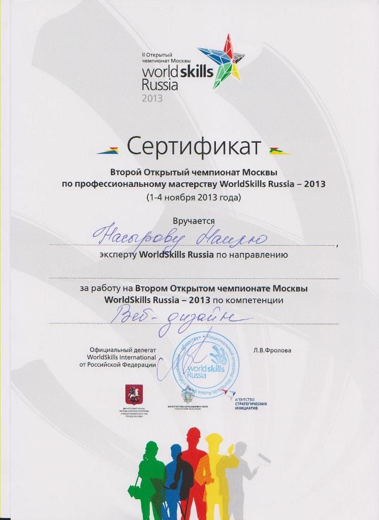В рамках сревнований преподавателю колледжа было присвоено звание эксперта World Skills Russia по компетенции «Веб-дизайн»