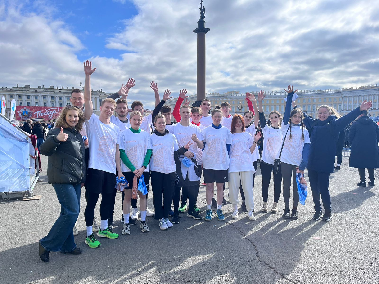 Студенты Санкт-Петербургского университета телекоммуникаций приняли участие в «Звёздной эстафете» – легкоатлетическом забеге, посвящённом 79-й годовщине Победы Советского народа в Великой Отечественной войне 1941–1945 годов. Мероприятие прошло 1 мая на Дворцовой площади.